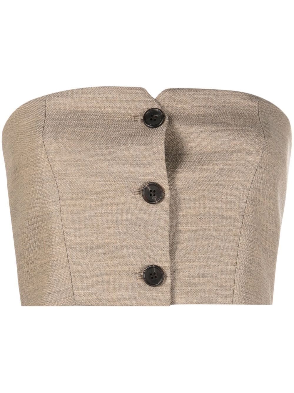 boustier corto, bottoni, stecche laterali, tessuto melange, foderatoComposizione: 100% lana Istruzioni di lavaggio: lavare a secco