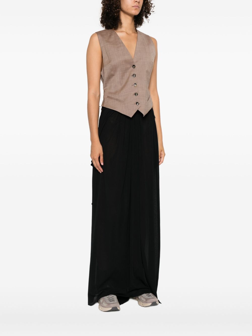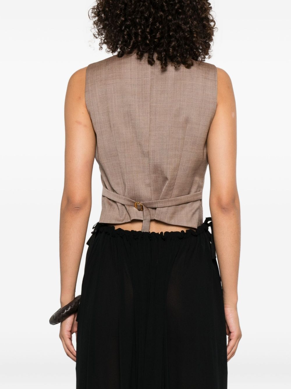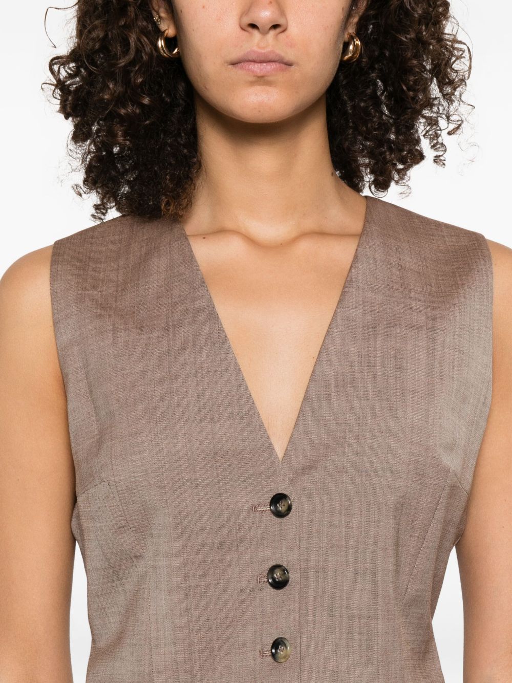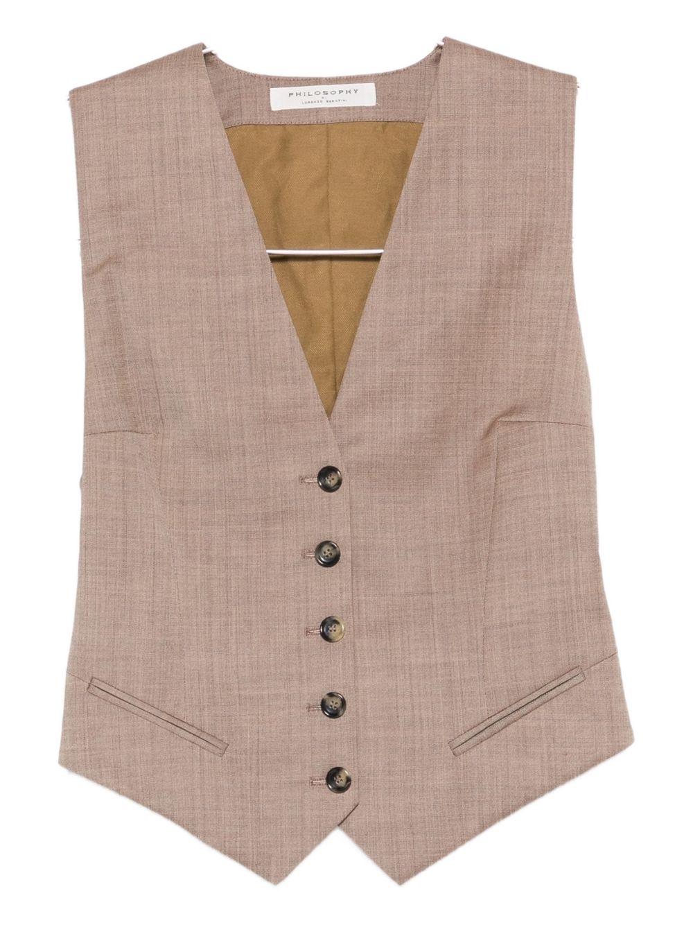 gilet, scollo a v, senza maniche, chiusura con bottoni, cinturino regolabile posteriore, foderato, tasche a filo lateraliComposizione: 77% lana, 10% lino, 9% viscosa, 2% elastane Istruzioni per il lavaggio: lavare a secco