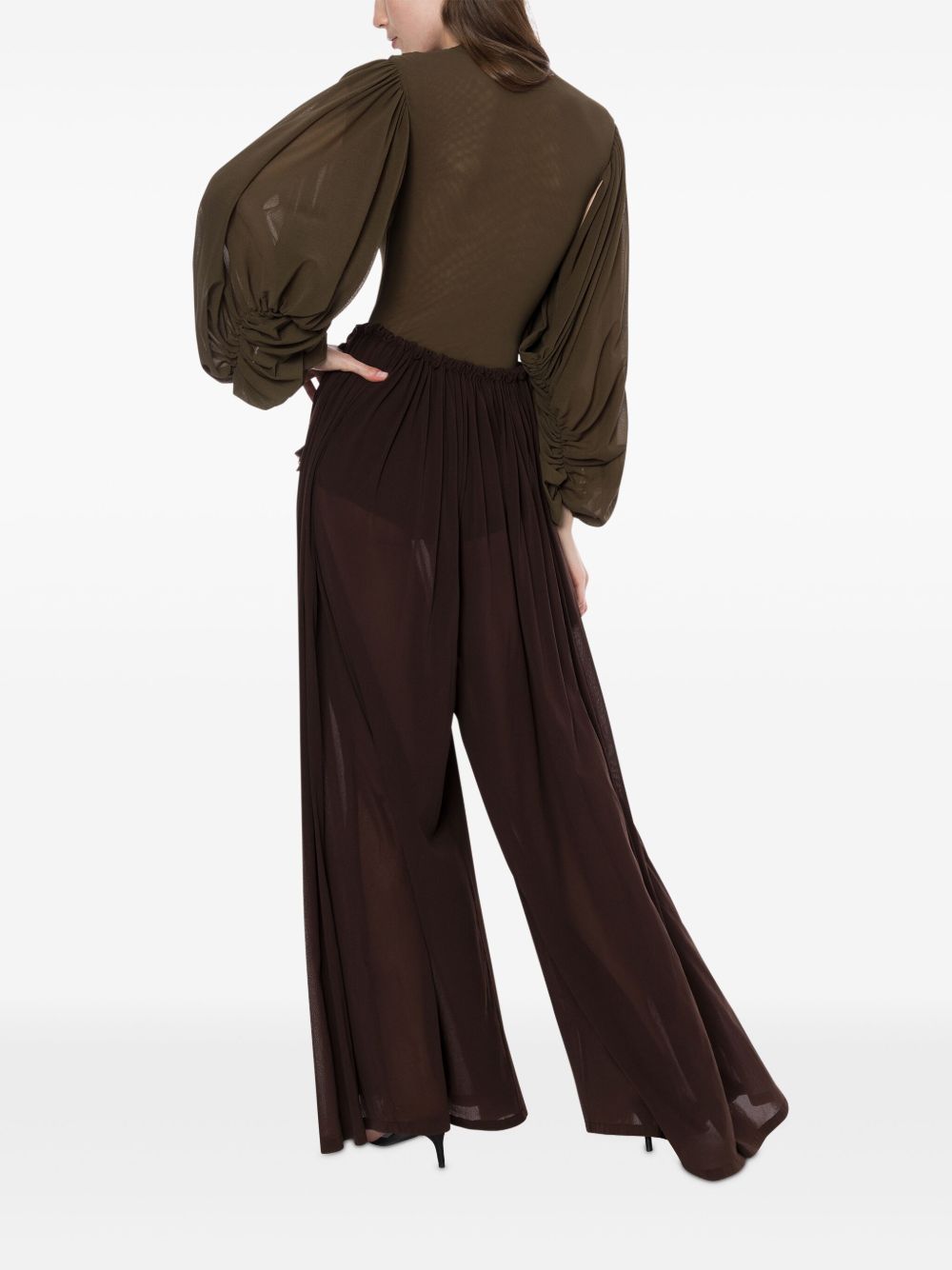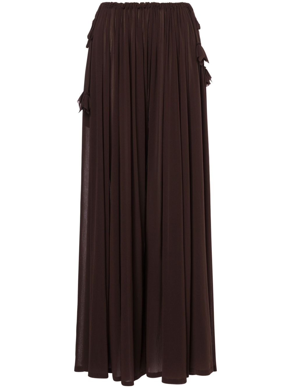 pantalone, tulle stretch, vita arricciata con lacci laterali, gamba larga, tasche lateraliComposizione: 100% poliammide Istruzioni per il lavaggio: lavare a mano