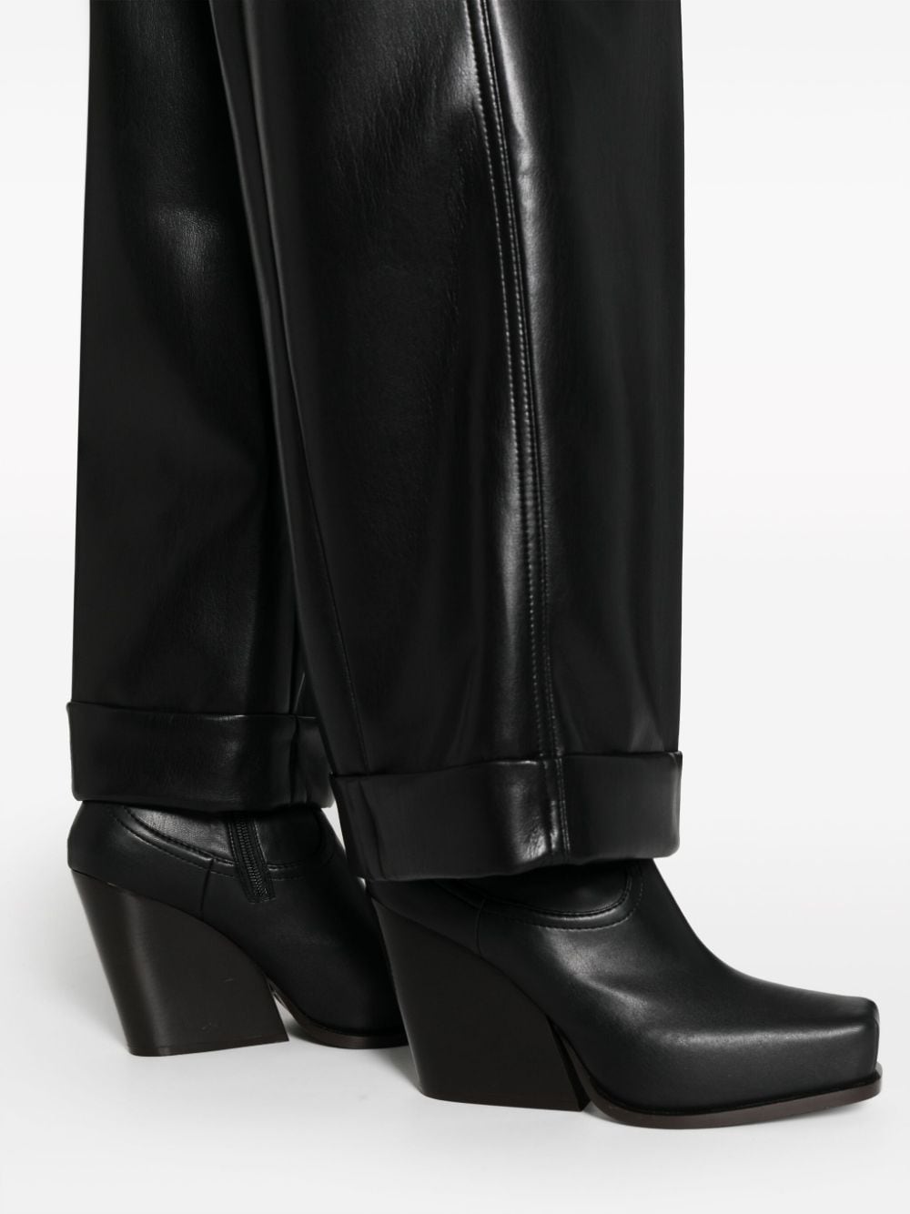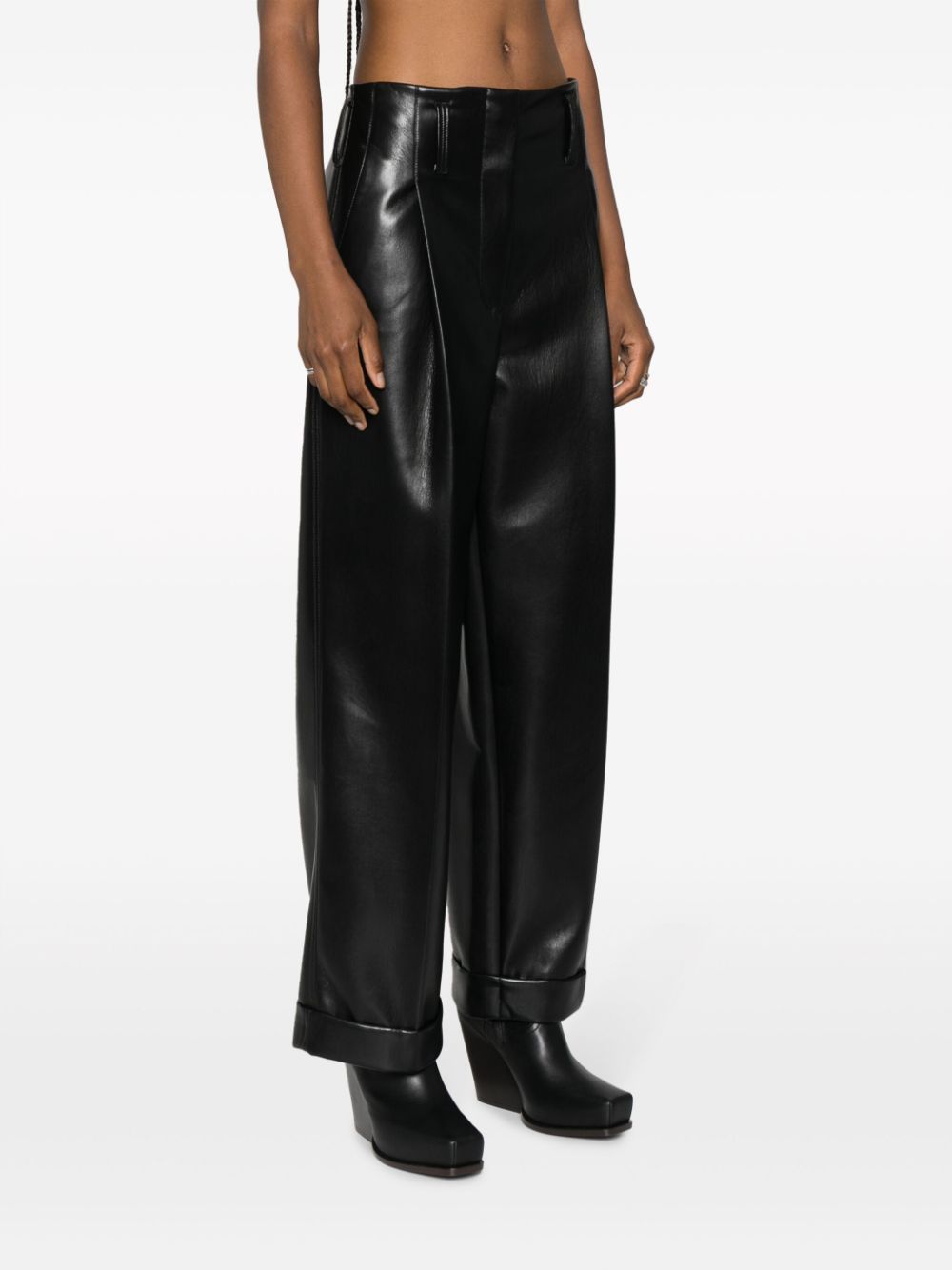 pantalone, finta pelle, pences, passanti per cintura, chiusura con gancio e zip, tasche, gamba larga, fondo con risvoltoComposizione: 100% poliestereIstruzioni per il lavaggio: lavare a mano