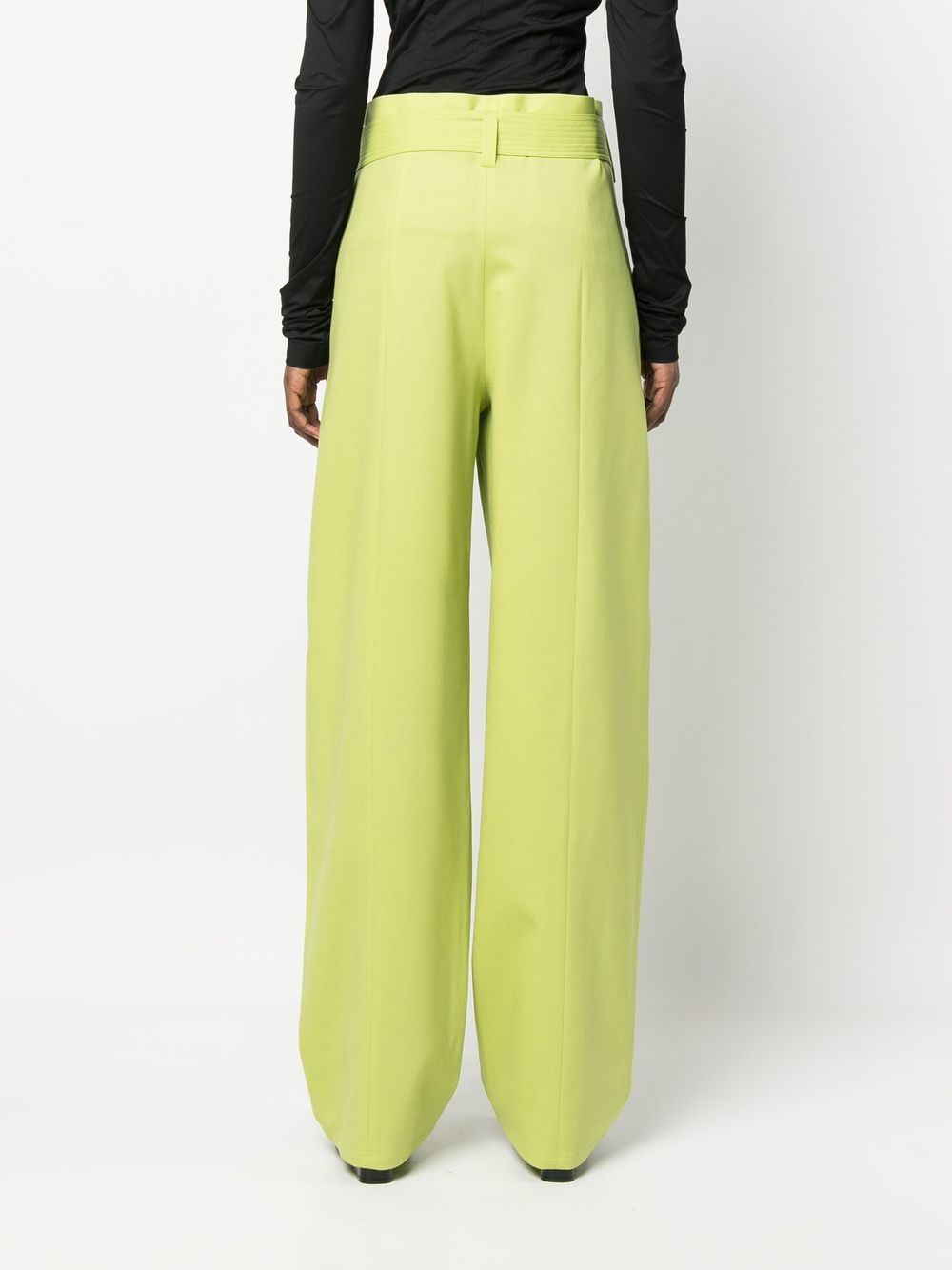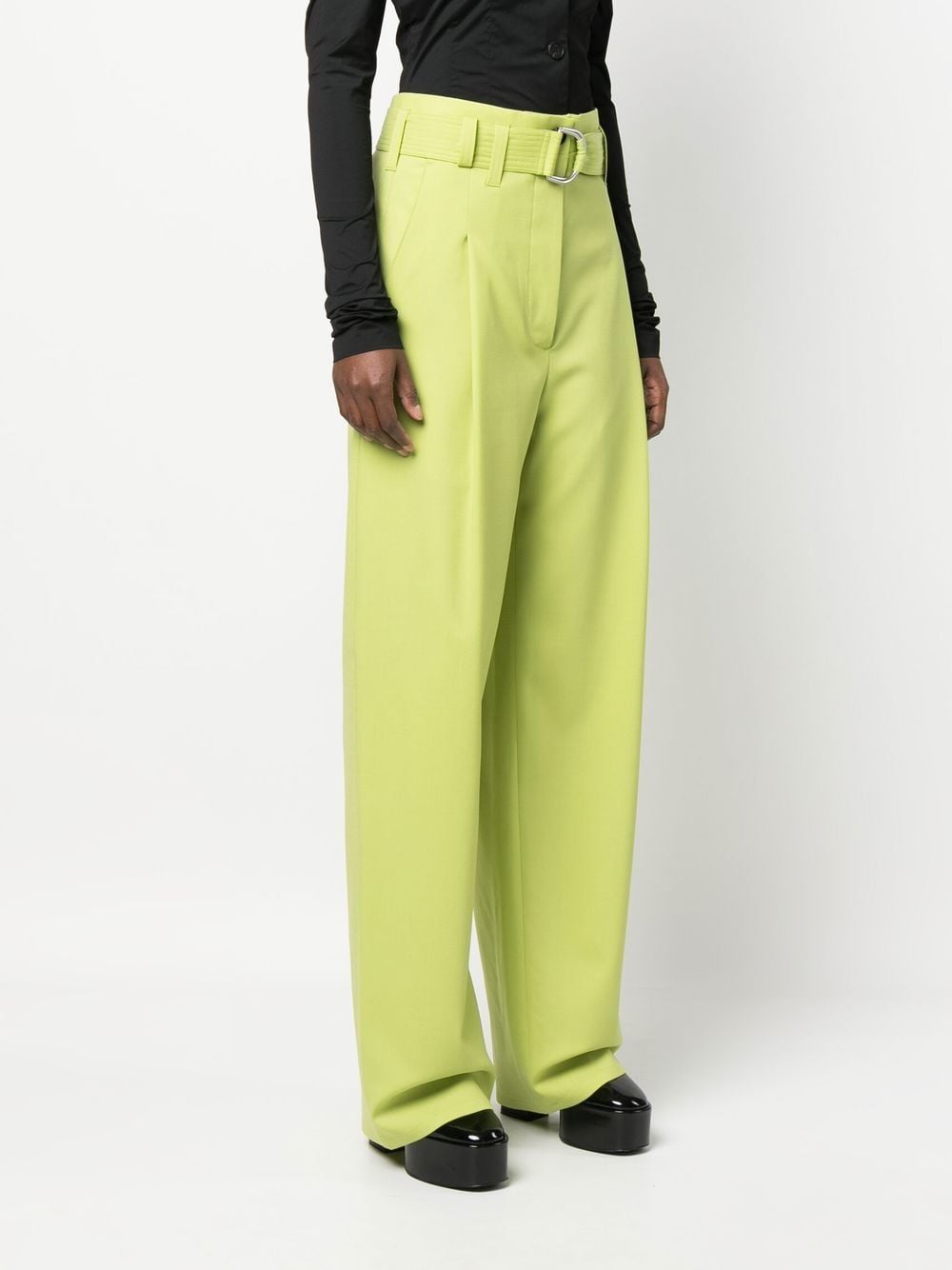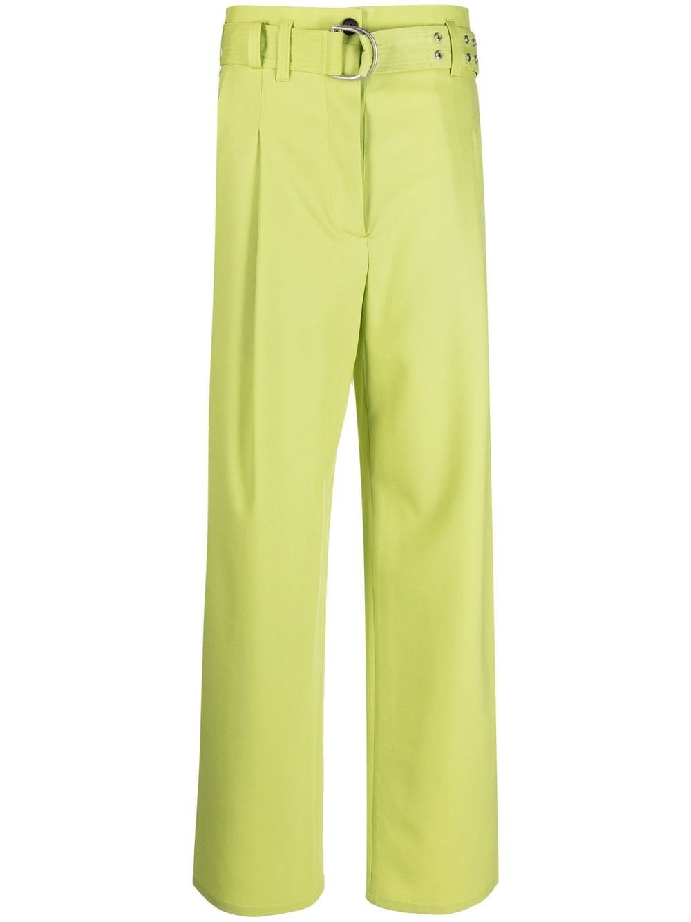 pantalone, tessuto, cintura con logo, bottone e zip, passanti, pences, tasche, gamba larga, lime Composizione: 98% lana 2% elastane Istruzioni di lavaggio: lavare a secco