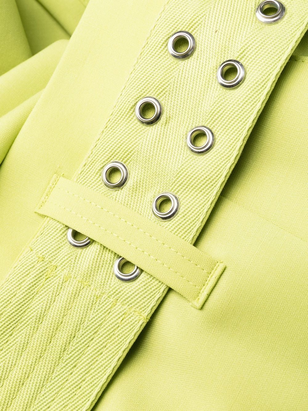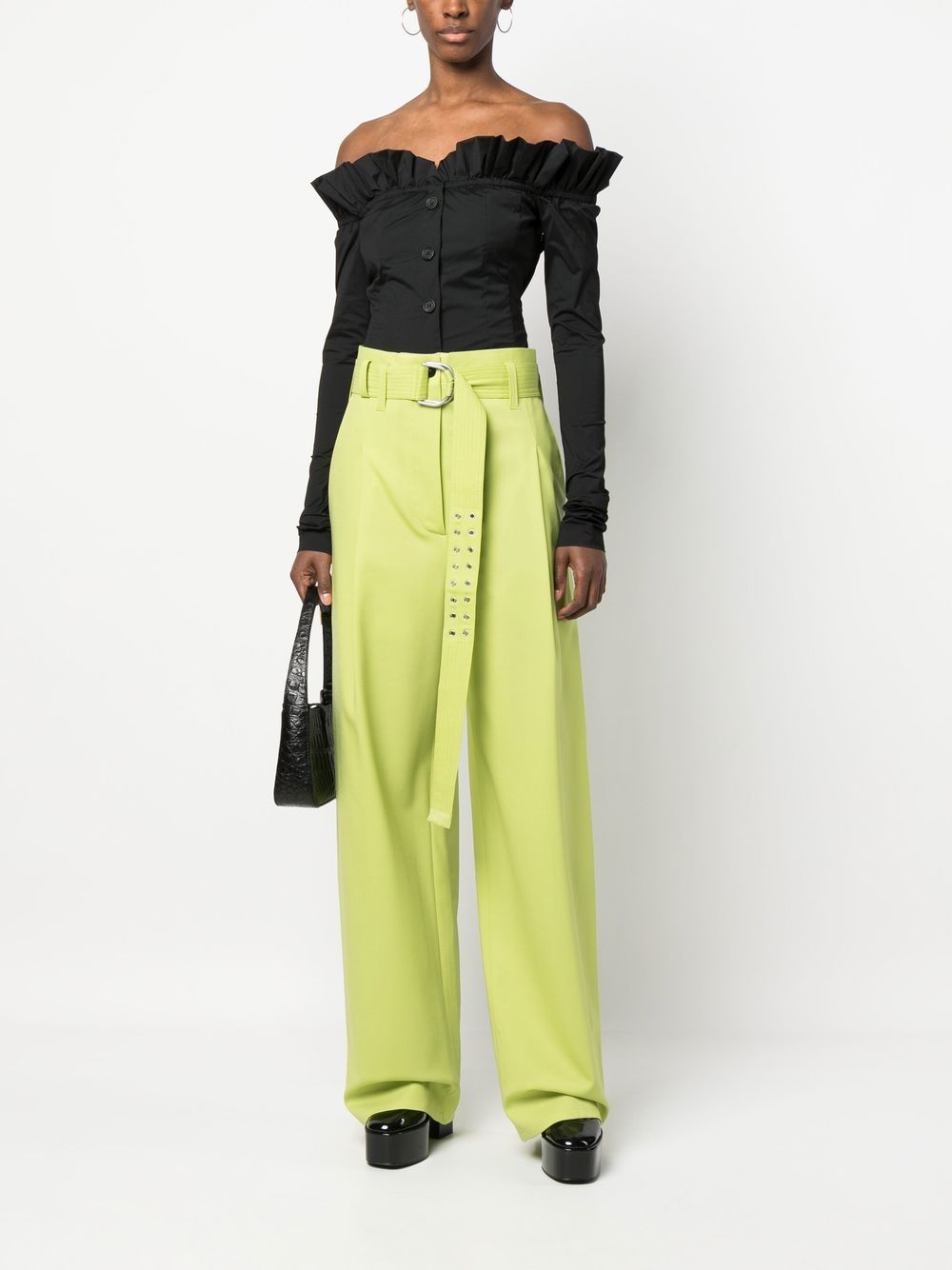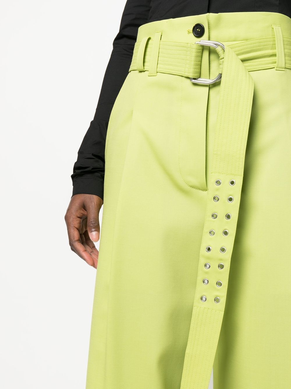 pantalone, tessuto, cintura con logo, bottone e zip, passanti, pences, tasche, gamba larga, lime Composizione: 98% lana 2% elastane Istruzioni di lavaggio: lavare a secco