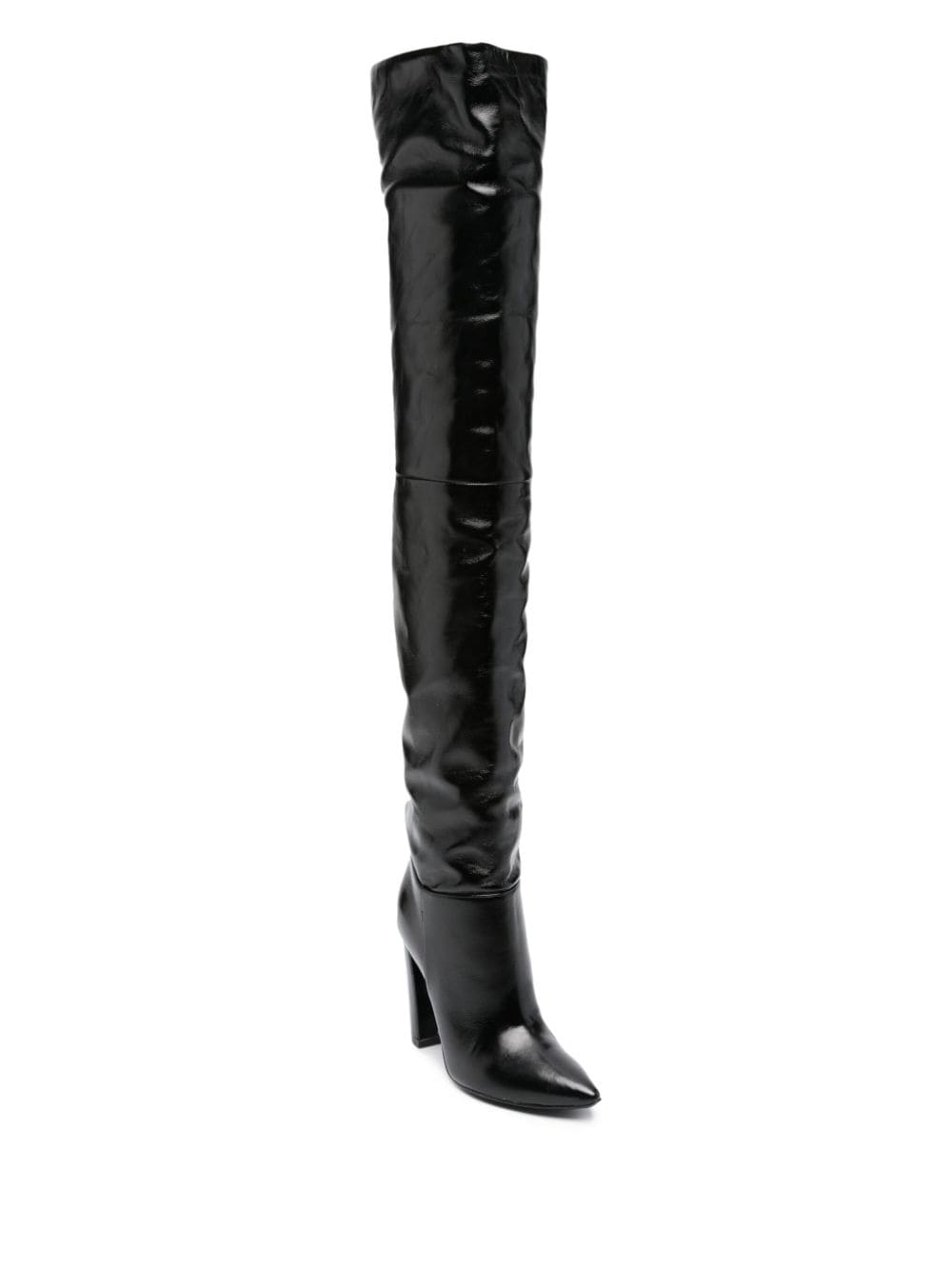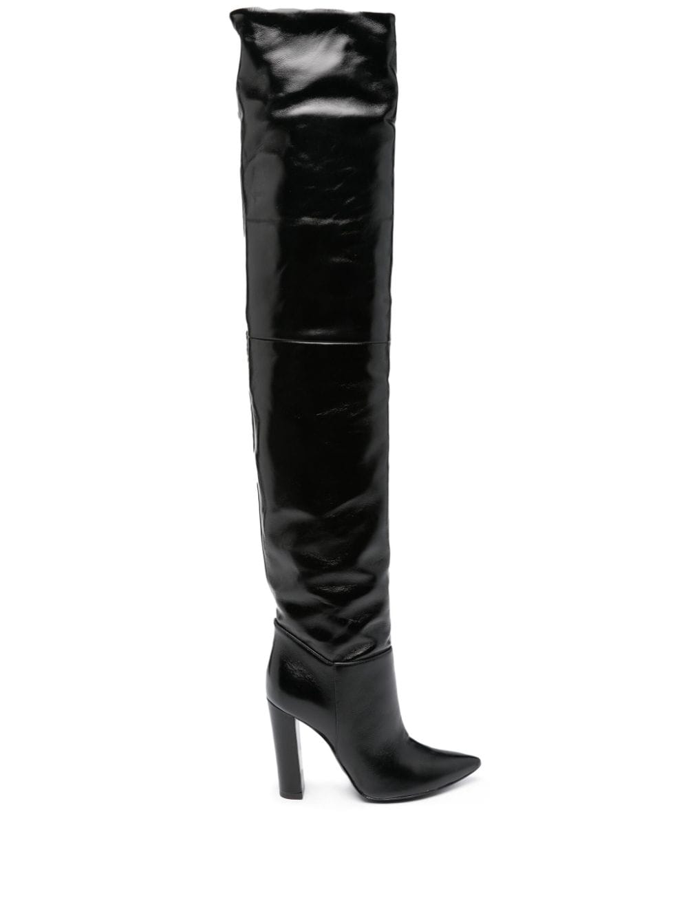 stivale alto oltre il ginocchio, punta, tacco 12 cm, pelle lucida