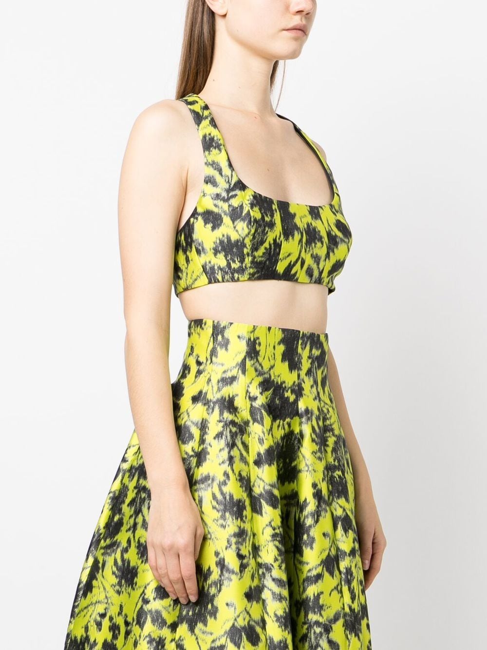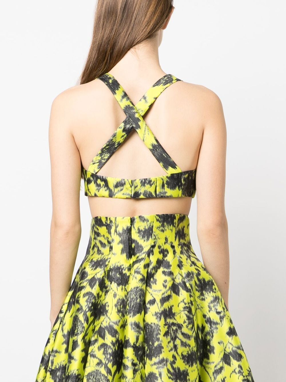 top corto, bretelle incrociate, tessuto con fantasia floreale, foderato, chiusura cn gancetti Composizione: 100% poliestere Istruzioni di lavaggio: lavare a mano o a secco