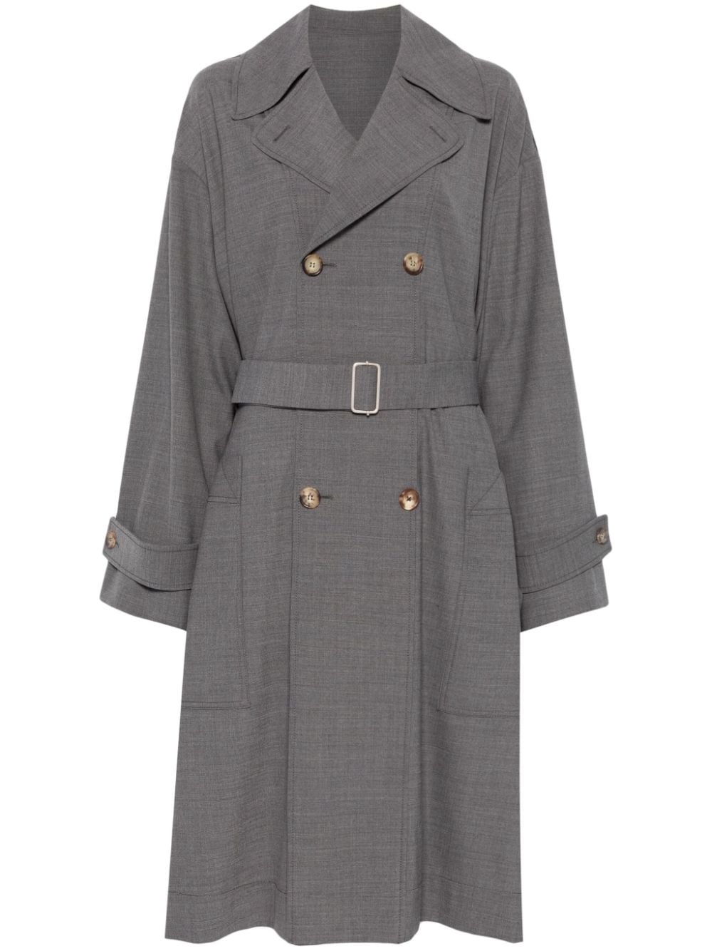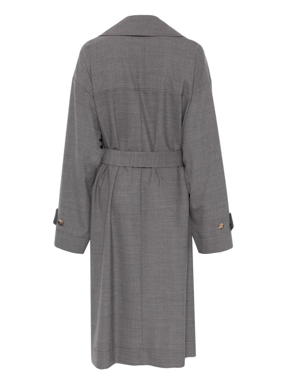 trench, oversize, collo con revers classico, doppio petto, cintura removibile, tasche laterali applicate, manica lunga, polsi con cinturino e bottone Composizione: 54% poliestere 44% lana 2% elastane Istruzioni per il lavaggio: lavare a secco
