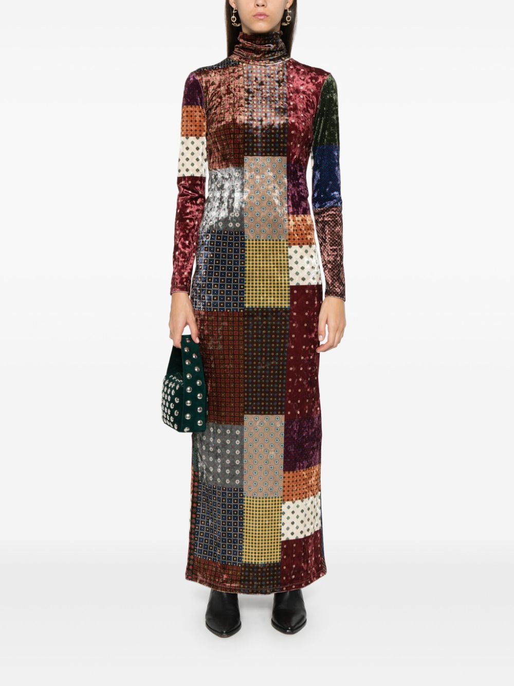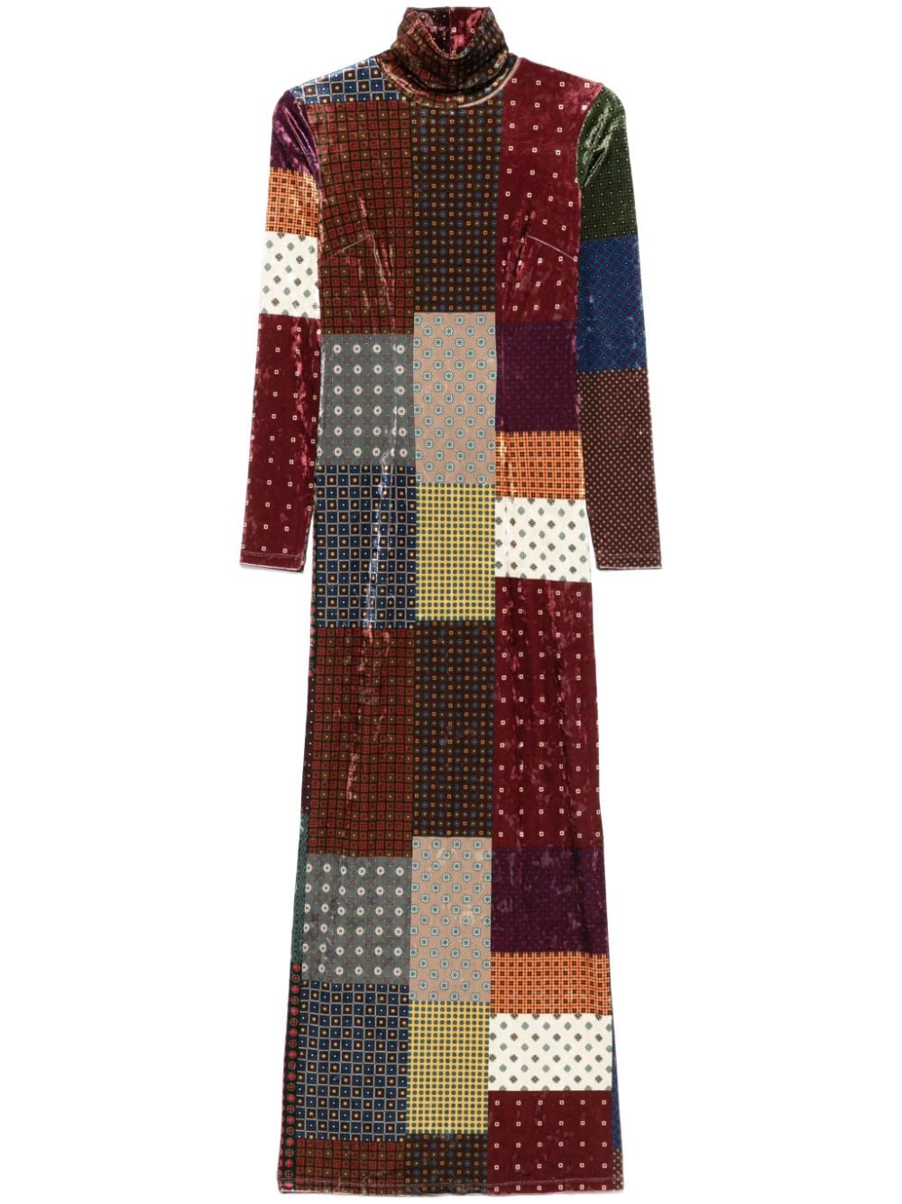 abito, velluto, stampa patchwork all over, collo alto, manica lunga Composizione: 92% poliestere 8% elastane Istruzioni per il lavaggio: lavare a secco