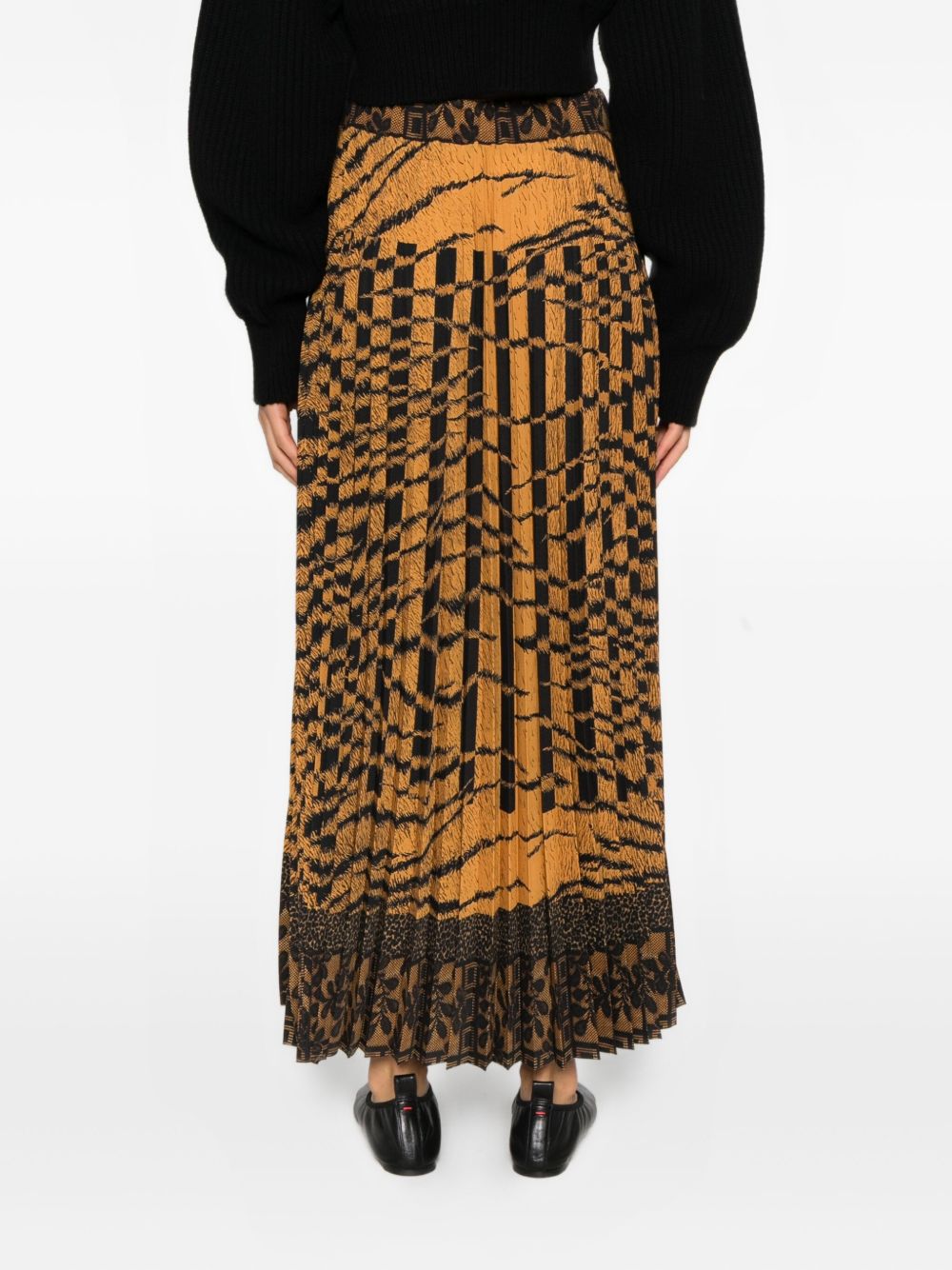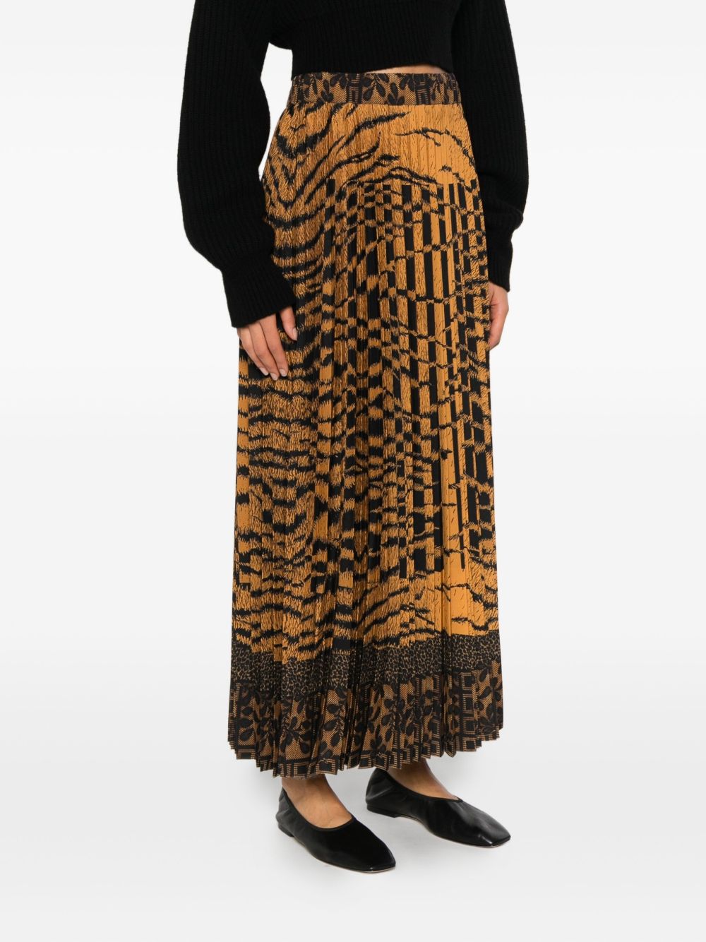 gonna lunga, vita elasticizzata, plissettata, stampa animalier