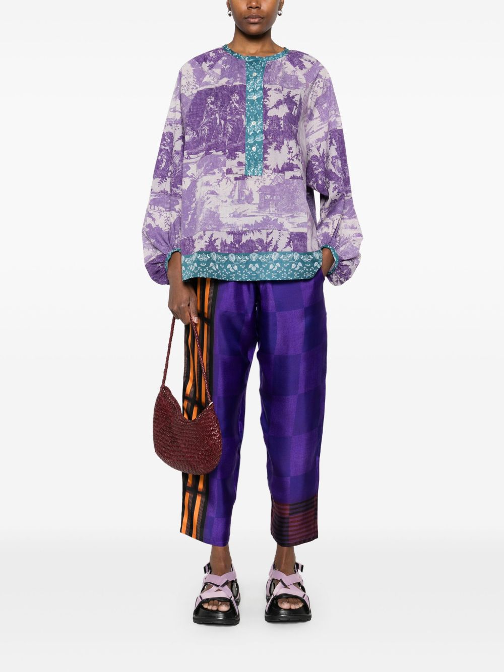 pantalone, elastico in vita con coulisse , tasche laterali , stampa geometrica bicolore Composizione: 100% seta Istruzioni per il lavaggio: lavare a secco
