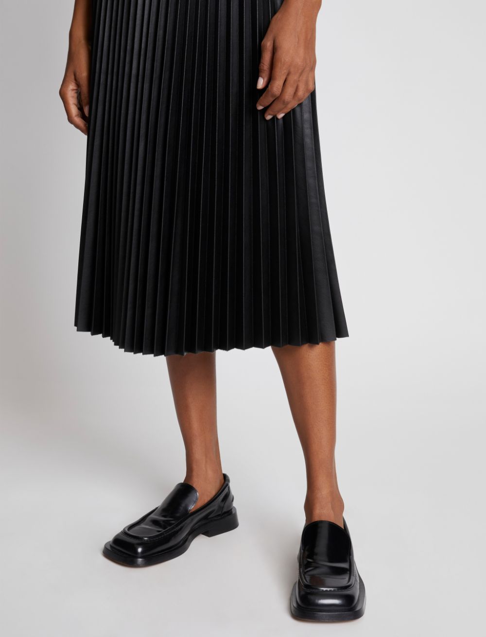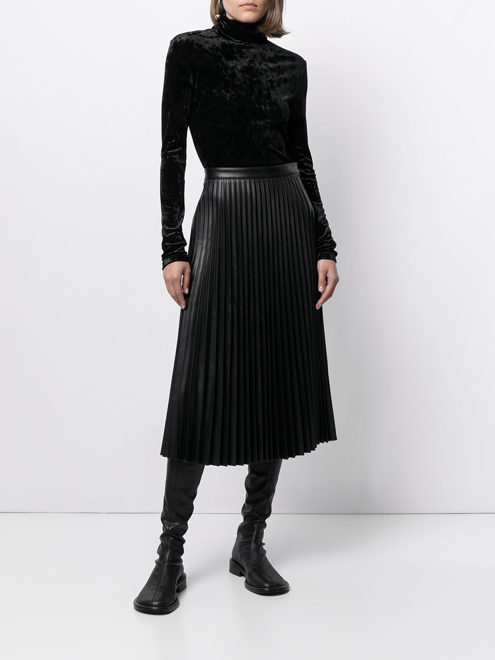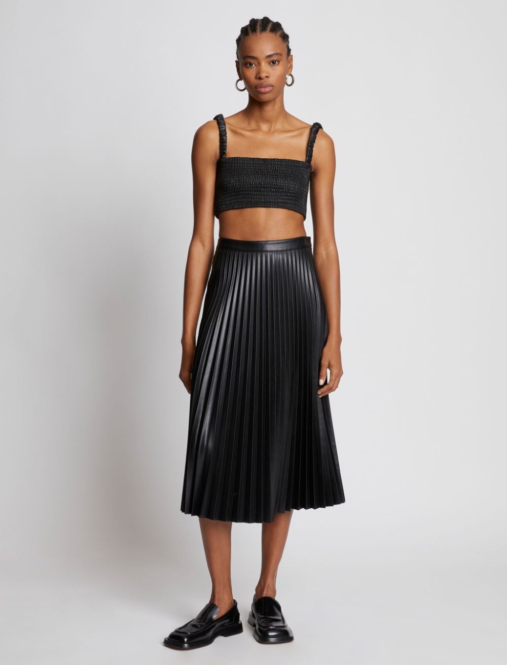 gonna, pelle sintetica, plissettata, vita alta, sfoderata, gancio e zipComposizione: 100% poliuretanoIstruzioni di lavaggio: lavare a mano