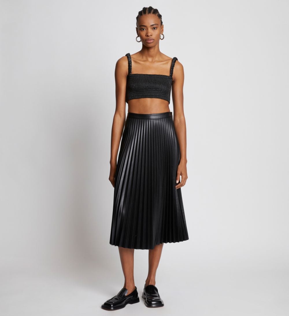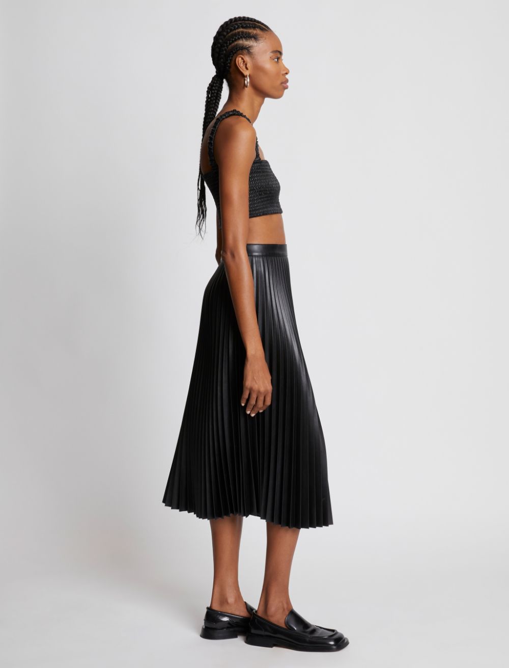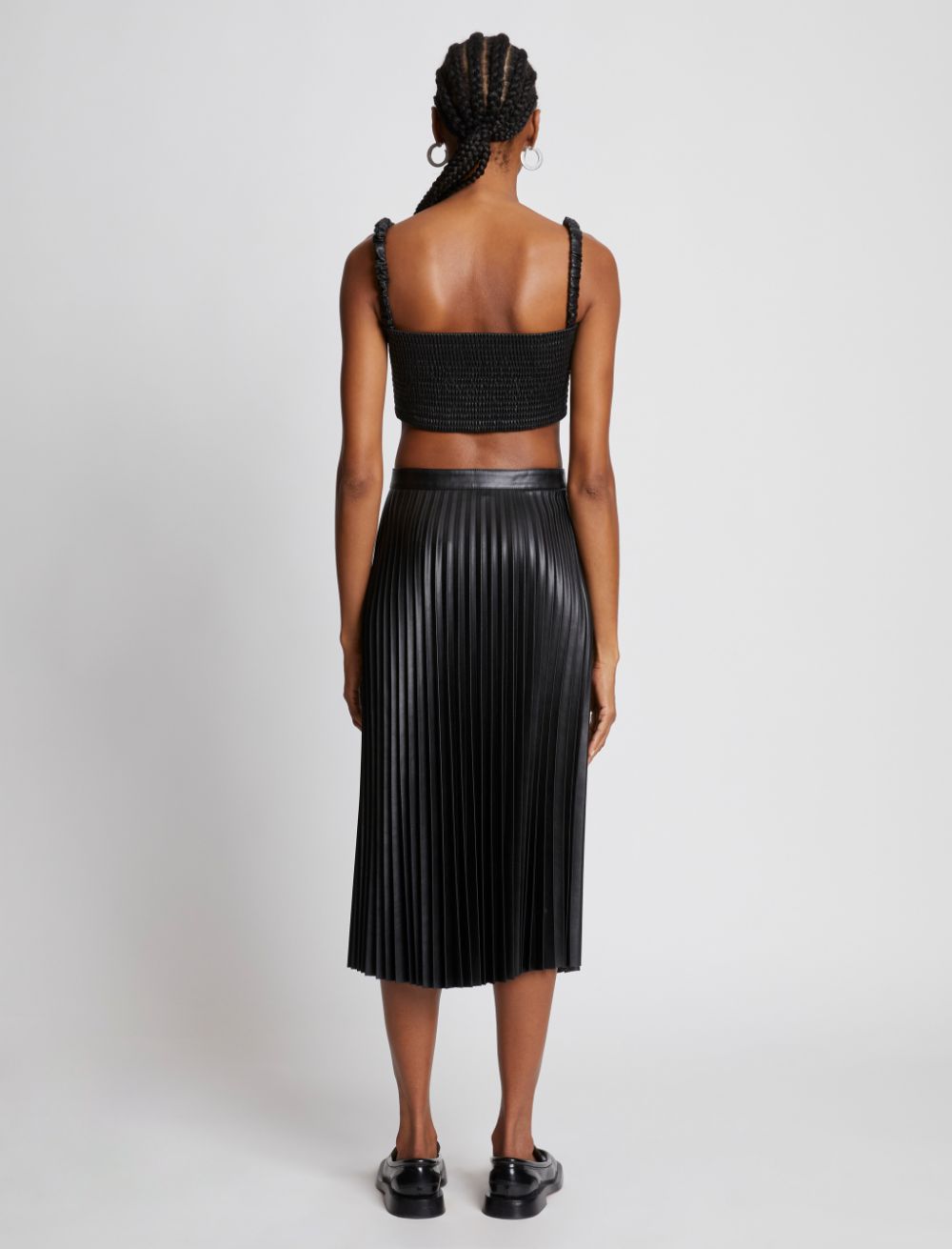 gonna, pelle sintetica, plissettata, vita alta, sfoderata, gancio e zipComposizione: 100% poliuretanoIstruzioni di lavaggio: lavare a mano