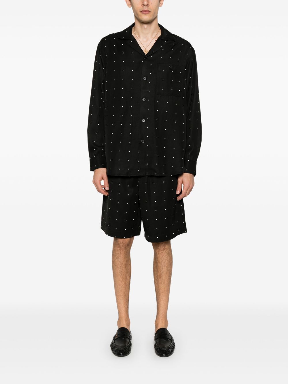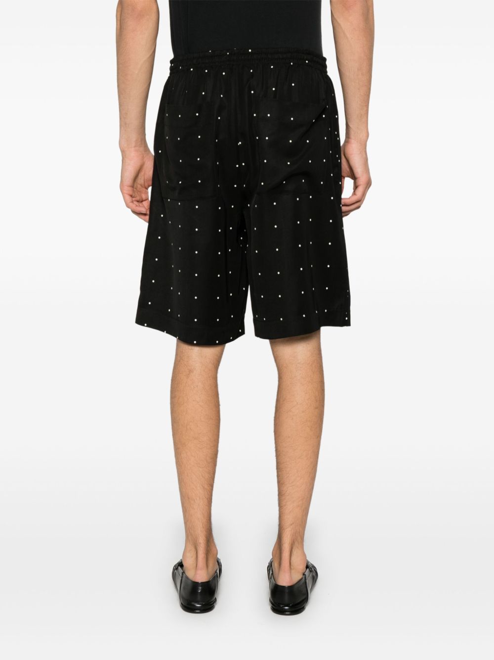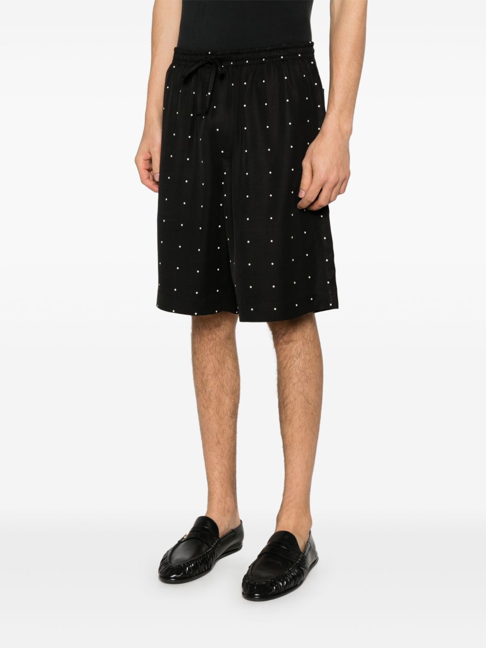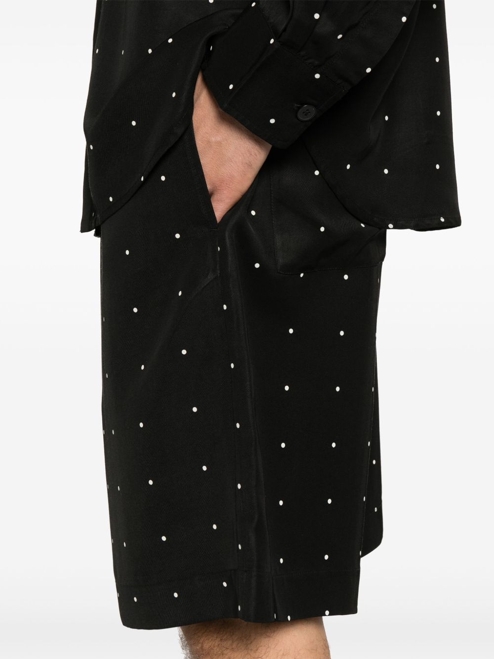 shorts, vita con elastico e coulisse, tasche laterali, tasche posteriori, tessuto con pois all over Composizione: 60% viscosa 40% lyocell Istruzioni per il lavaggio: lavare in lavatrice