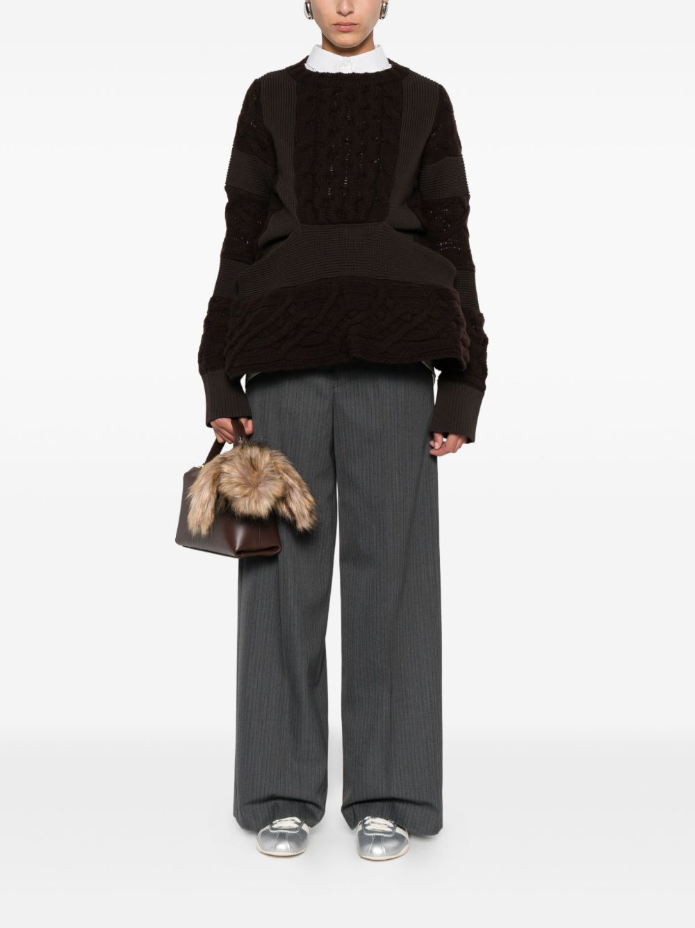 maglia, girocollo, manica lunga, lavorazione a trecce con parti lavorate a coste, tasche a marsupio Composizione: 63% lana, 37% poliestere Istruzioni per il lavaggio: lavare a secco