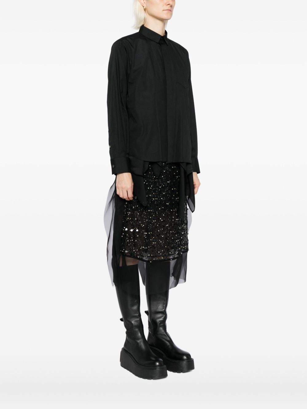 camicia, colletto a punta, chiusura con bottoni coperta, manica lunga, polsini con bottoni, foulard non staccabile