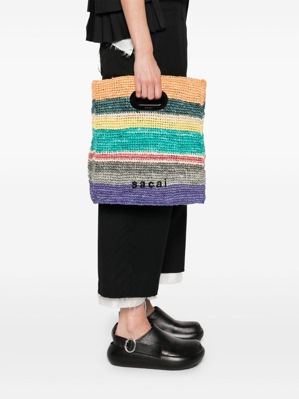 borsa , manici, tracolla regolabile e staccabile, fantasia a righe multicolor, tasca interna, logo ricamato Composizione: raffia, pelle, zinco