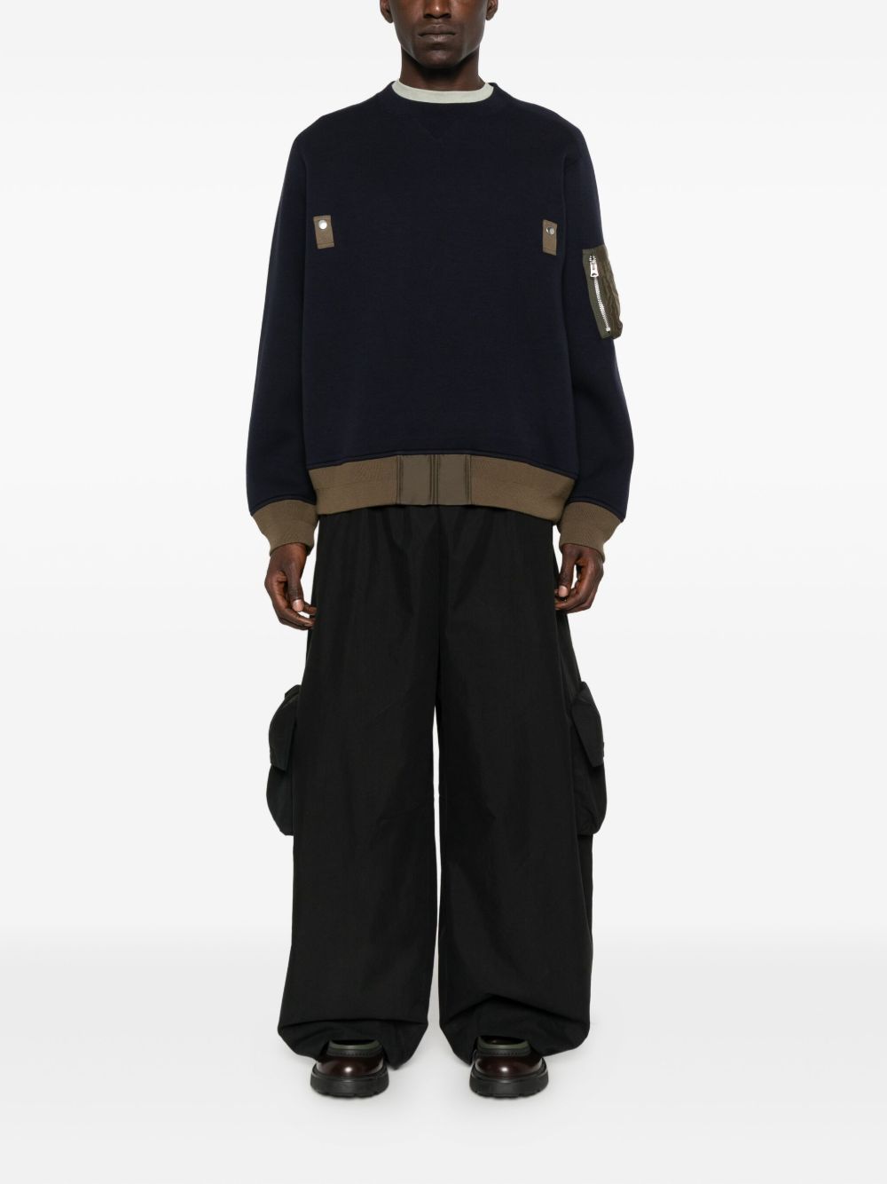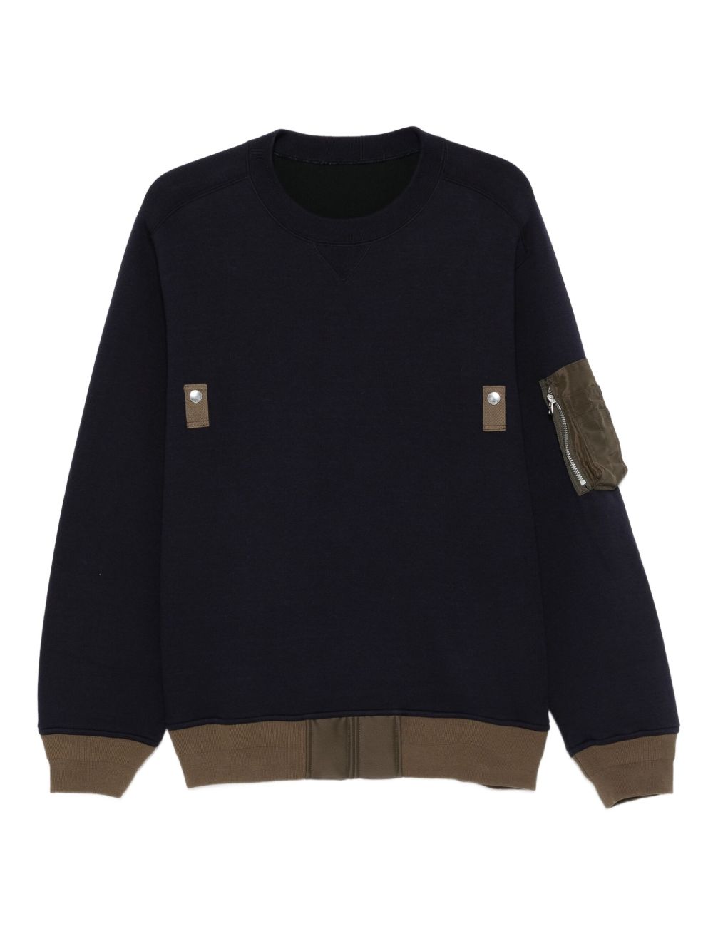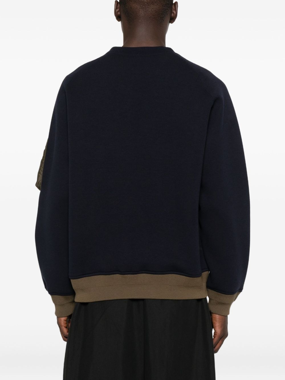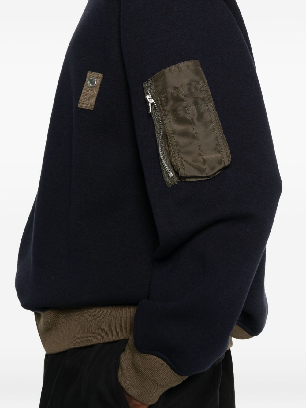 felpa, girocollo, fondo e polsi in contrasto, maniche lunghe, taschino a contrasto con zip sulla manica