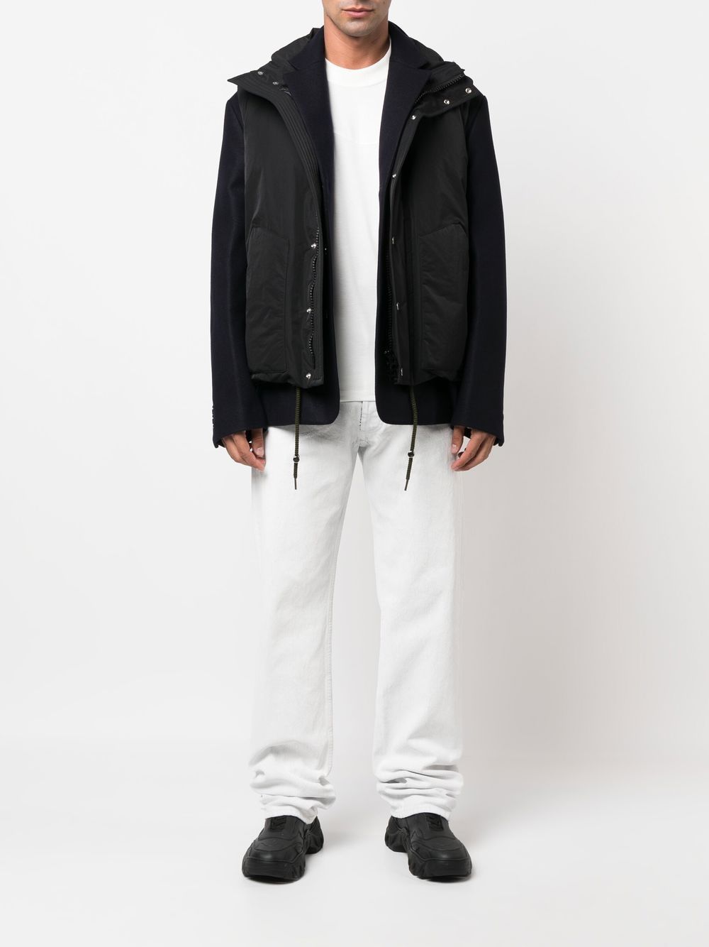 giacca 3 bottoni + bomber smanicato imbottito, multi tasche, bottoni, bottoni automatici, zip, spacchi laterali con bottoni automatici, tasche interne, coulisse sul fondo Composizione: 100% lana , 100% poliestere altre parti Istruzioni di lavaggio: lavare a secco