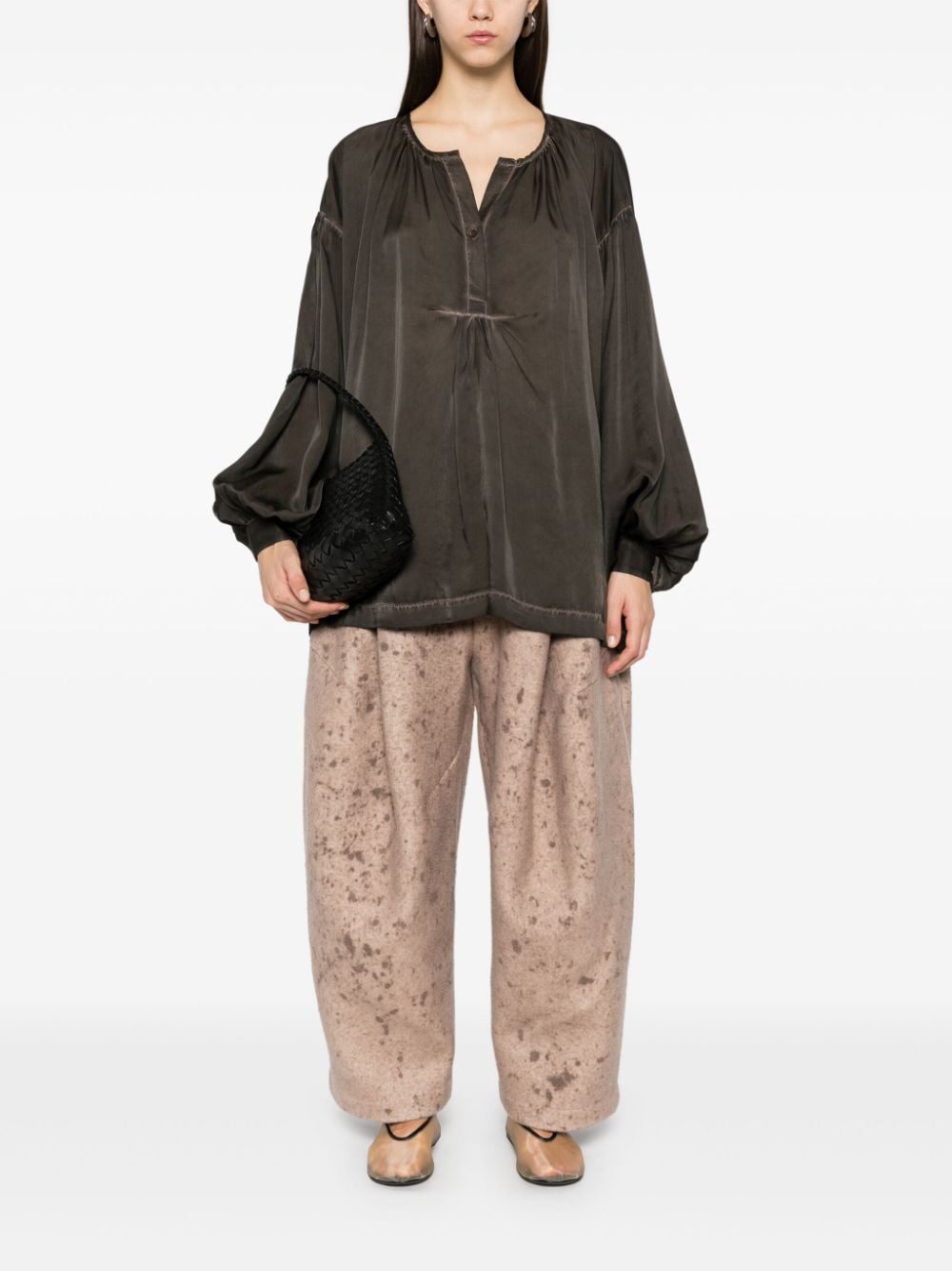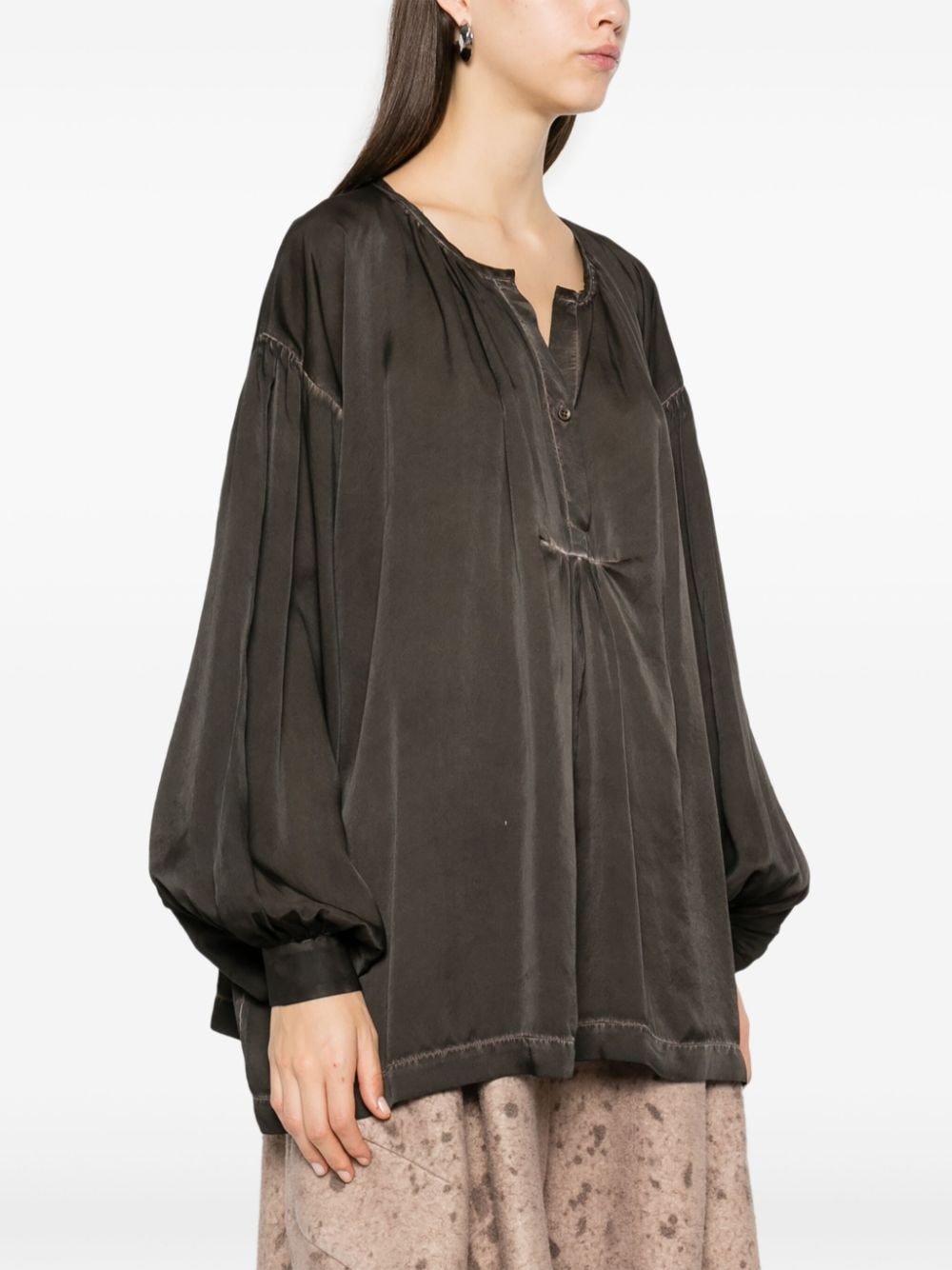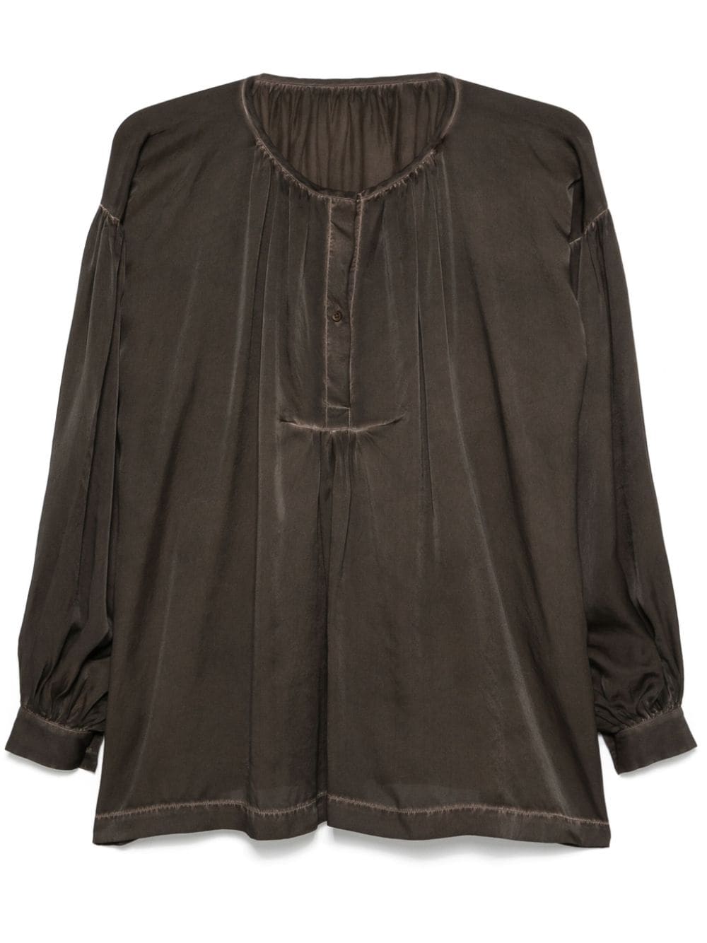 blusa, vestibilità ampia, girocollo con arriccio, chisura frontale corta con bottoni, manica lunga, polsini con arriccio e chiusu con bottone, effetto leggermente scoloritoComposizione: 100% setaIstruzioni per il lavaggio: lavare a mano