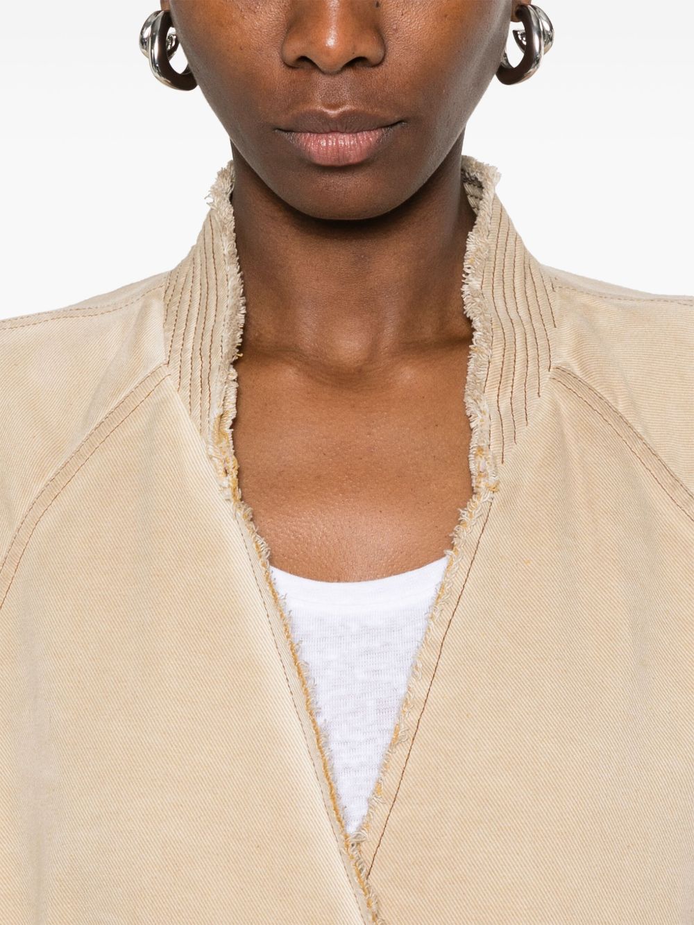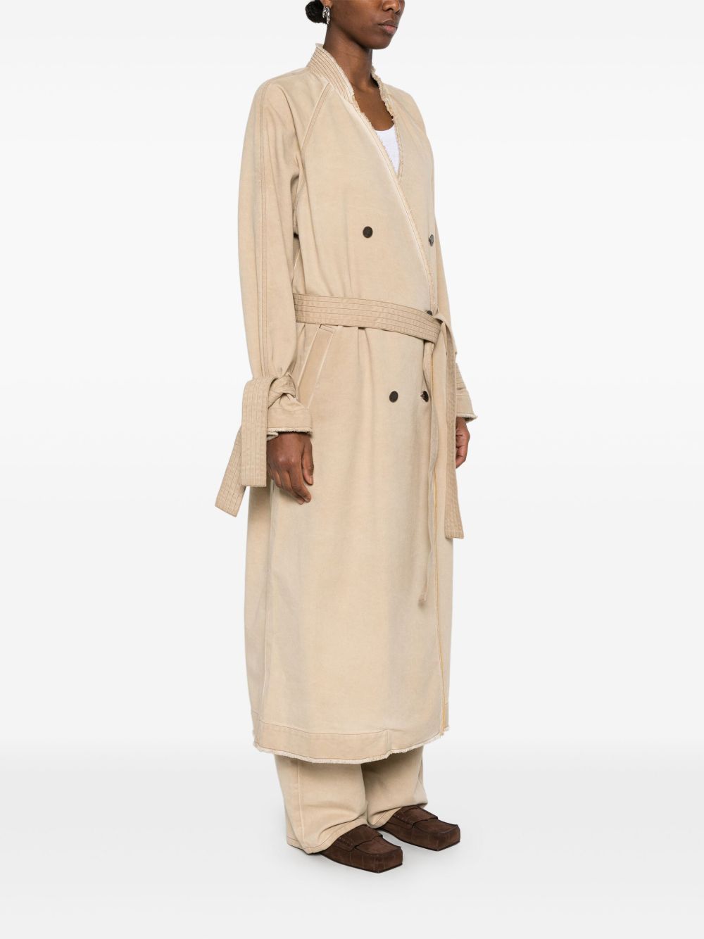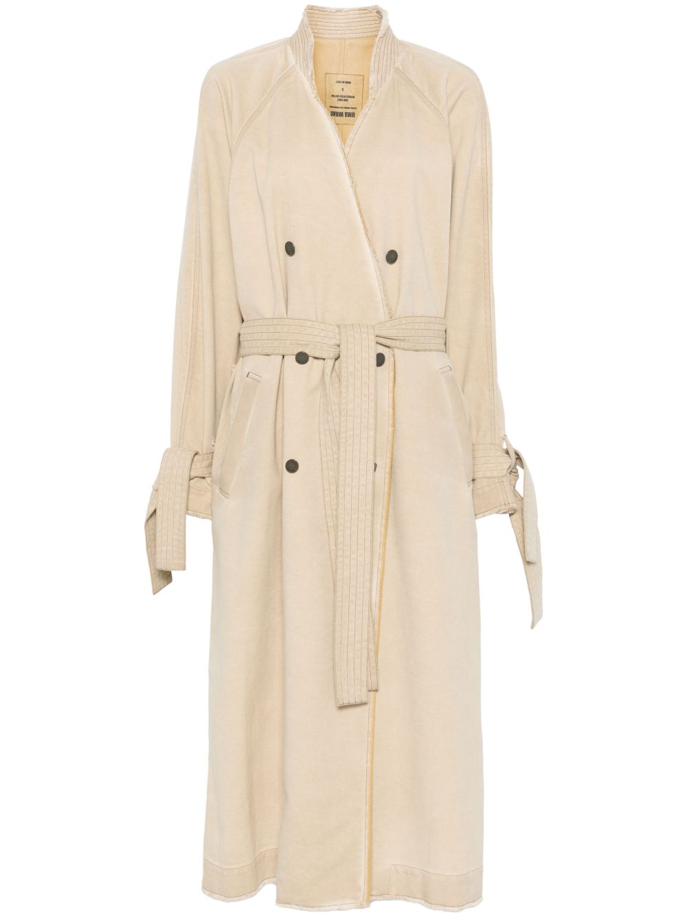 cappotto, doppio petto, chiusura con bottoni in metallo, senza collo, manica raglan, manica lunga, polsi con passanti e cinturini removibili, senza fodera, bordi sfrangiati, cintura removibilecon passanti, tasche laterali, spacco posteriore, vestibilità ampia Composizione: 89% cotone 11% poliestere Istruzioni per il lavaggio: lavare a mano