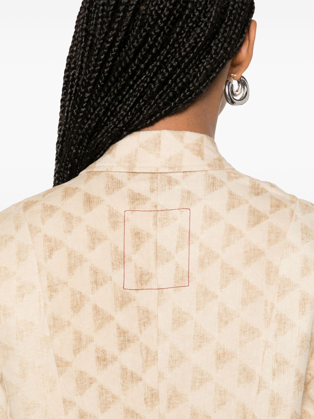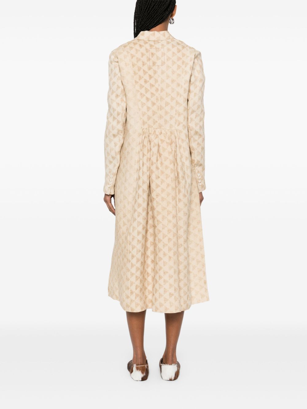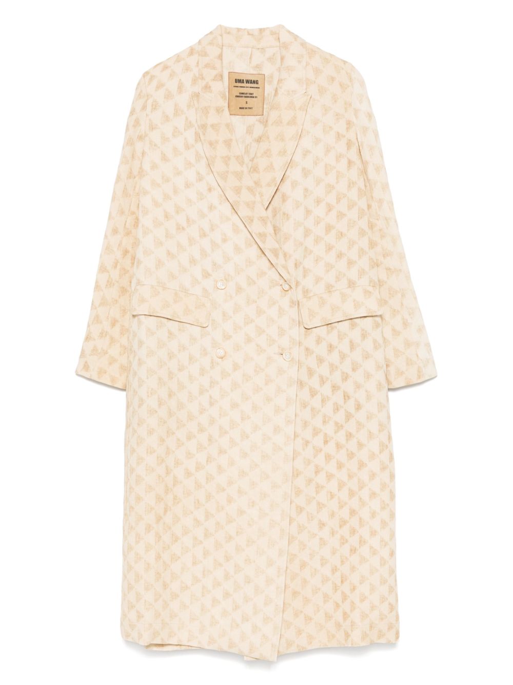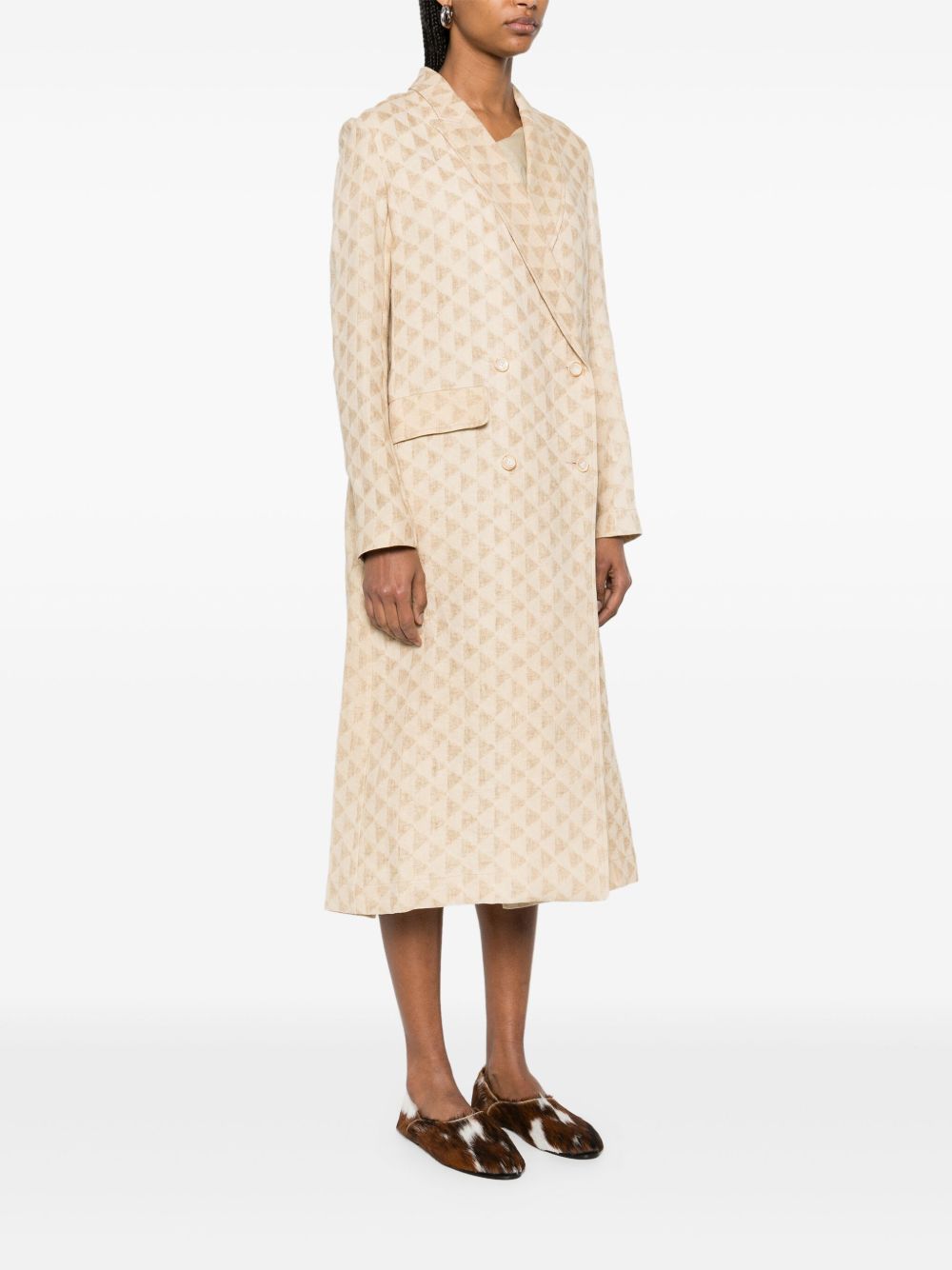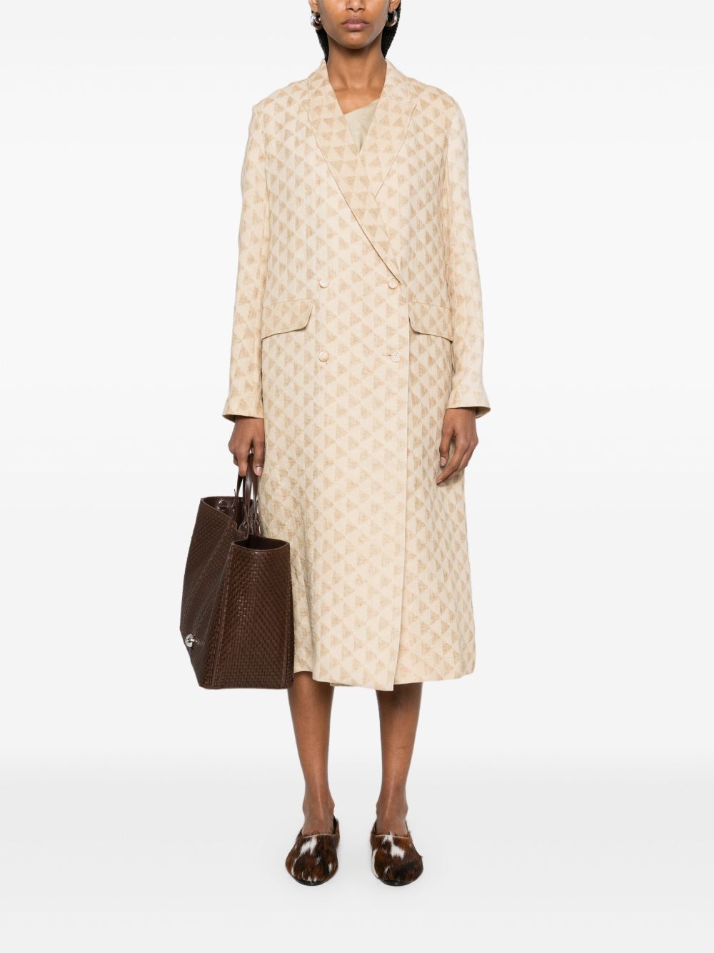 cappotto, doppio petto, tessuto jaquard con motivo geometrico, chiusura con bottoni, tasche lateraliComposizione: 57% lino 43% carta tessile istruzione per il lavaggio: lavare a mano