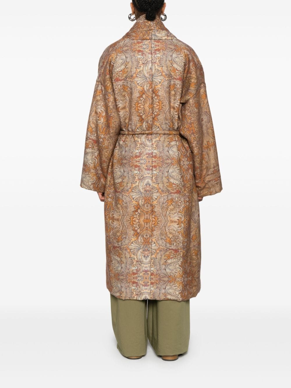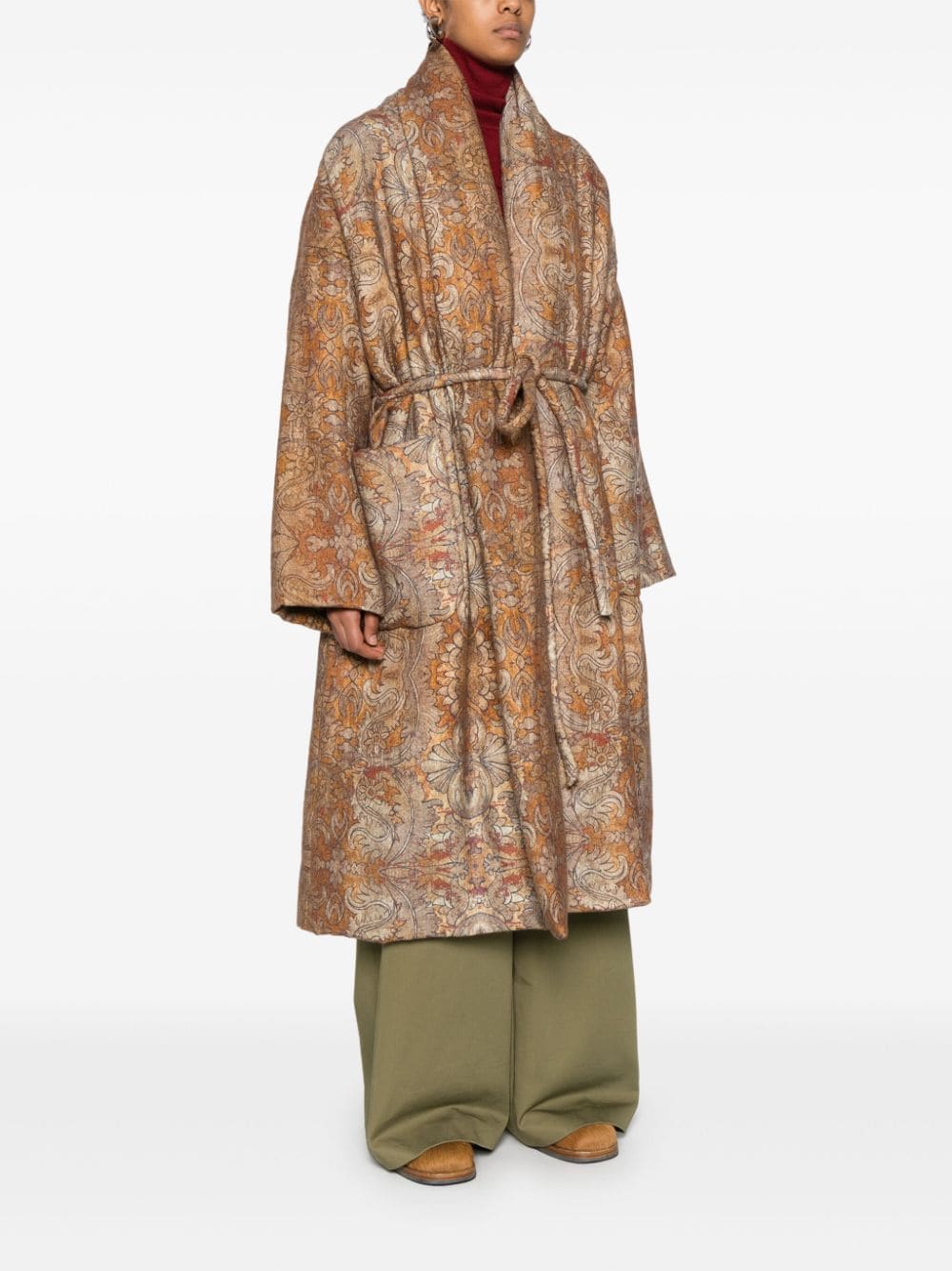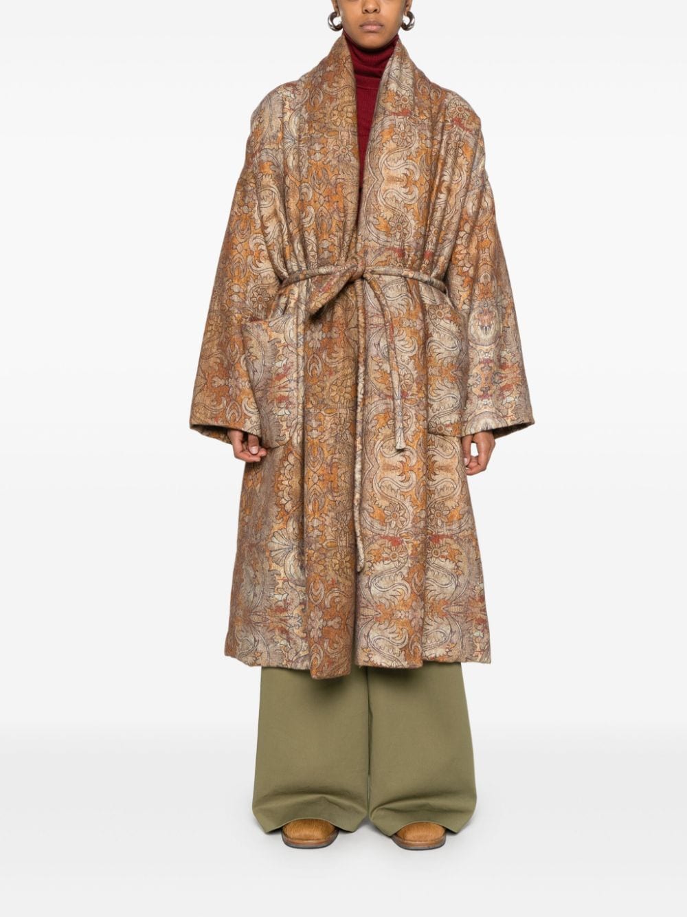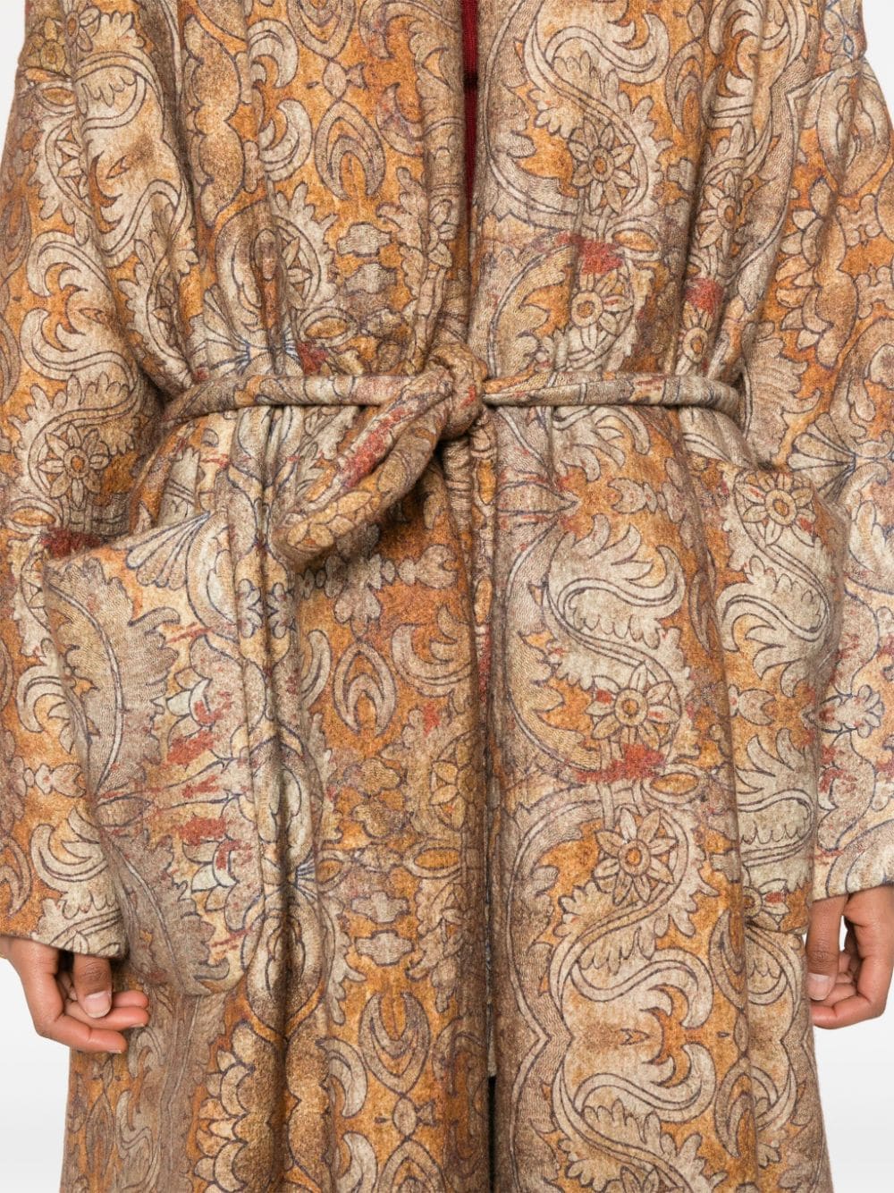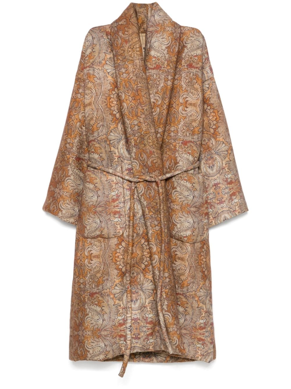 cappotto, imbottito, foderato, vestibilità ampia, collo sciallato, stampa floreale all over, cintura in vita, tasche laterali, manica lungaComposizione: lana vergine 46%, lino 39%, poliammide 15%Istruzioni per il lavaggio: lavare a secco