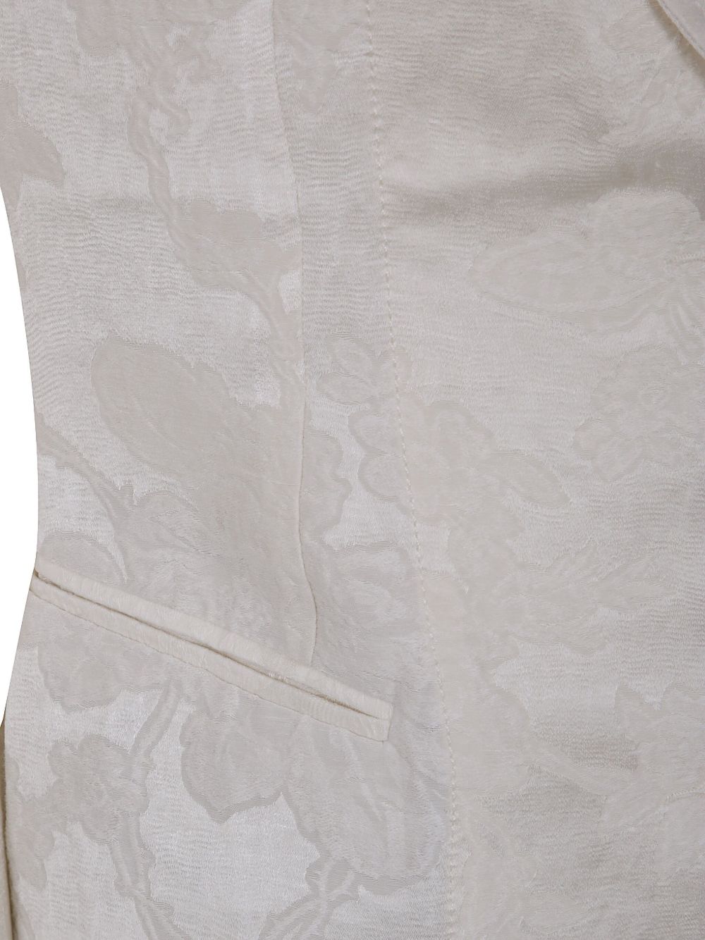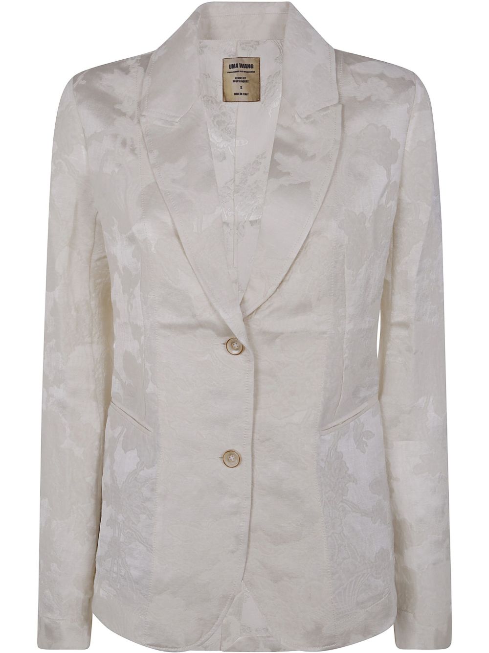 giacca, revers a lancia, chiusura a due bottoni, tessuto damascato opaco e lucido, tasche a filo laterali, spacco posteriore, manica lunga, polsi con bottoni e asole aperte, senza fodera Composizione: 56% lino, 44% viscosa Istruzioni per il lavaggio: lavare a mano