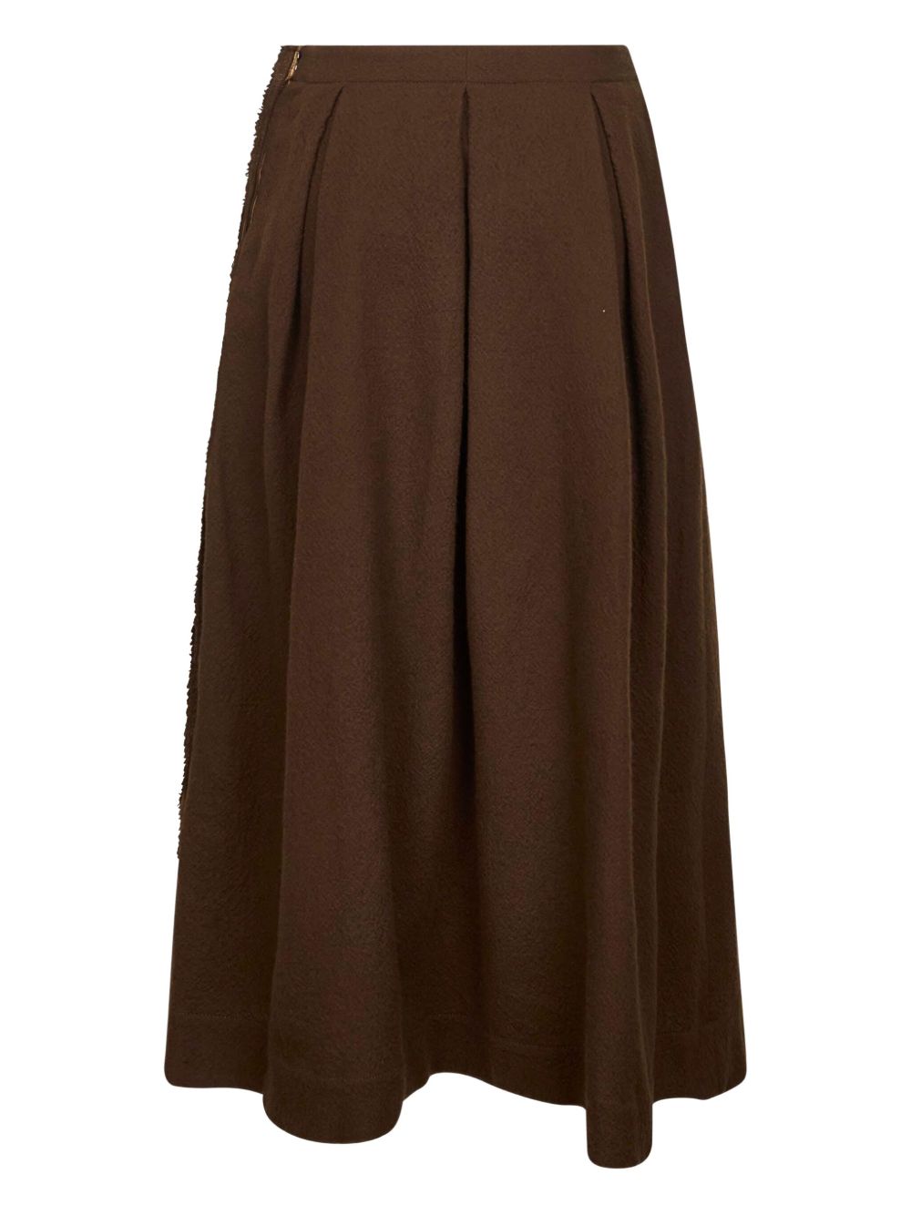 gonna midi, pences in vita, tasche laterali, fondo svasato, chisuura laterale con gancio e bottoni