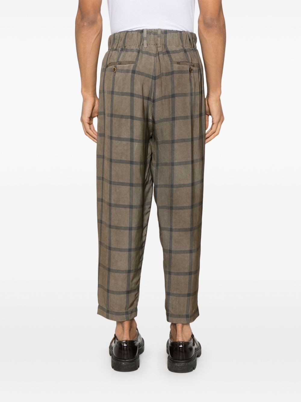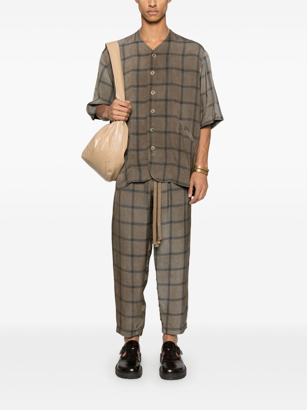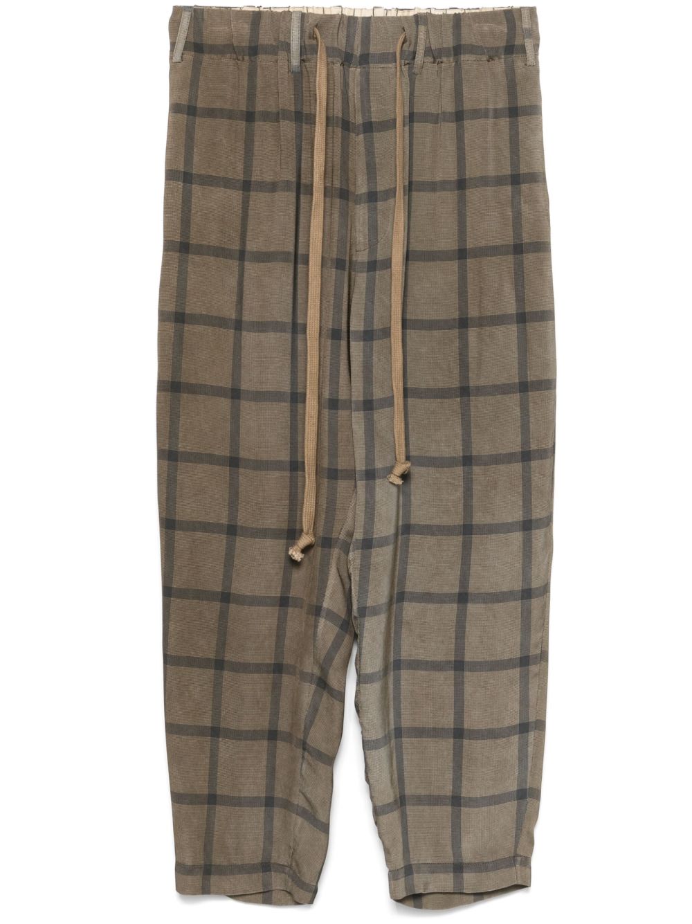 pantalone, vita con elastico, coulisse esterna, tessuto a quadri, chiusura frontale con bottoni, tasche laterali, tasche posteriori con bottoni, gamba largaComposizione: 100% viscosa Istruzioni per il lavaggio: lavare a mano