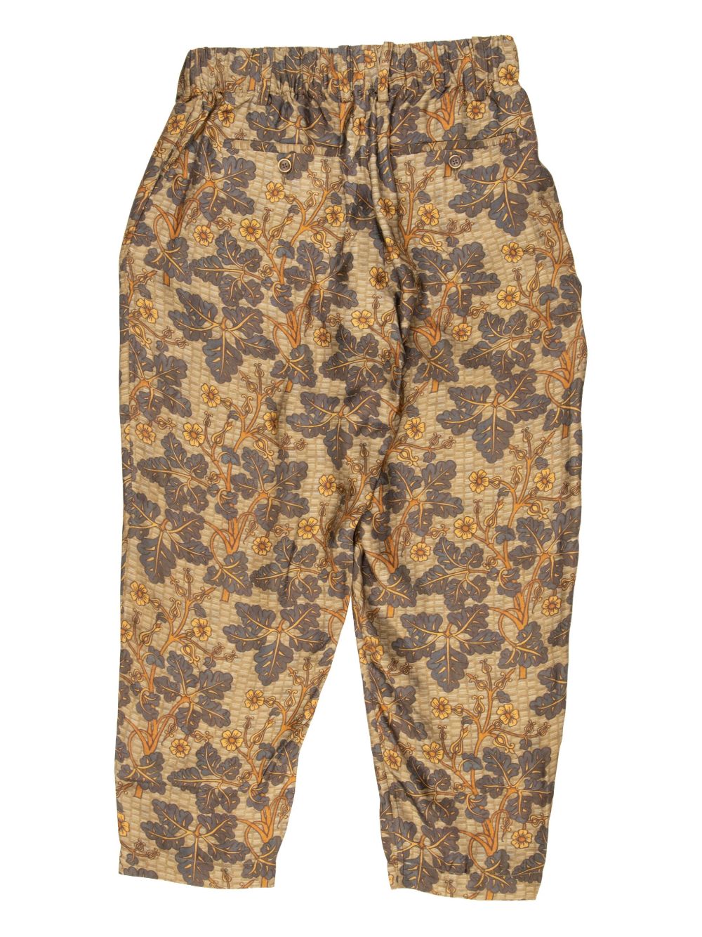 pantalone, tessuto con stampa floreale , elastico in vita, coulisse esterna, passanti per cintura, tasche laterali, tasche a filo con bottoni posteriori, gamba larga, chiusura nascosta frontale con bottoni Composizione: 50% viscosa 50% cupro Istruzioni per il lavaggio: lavare a mano