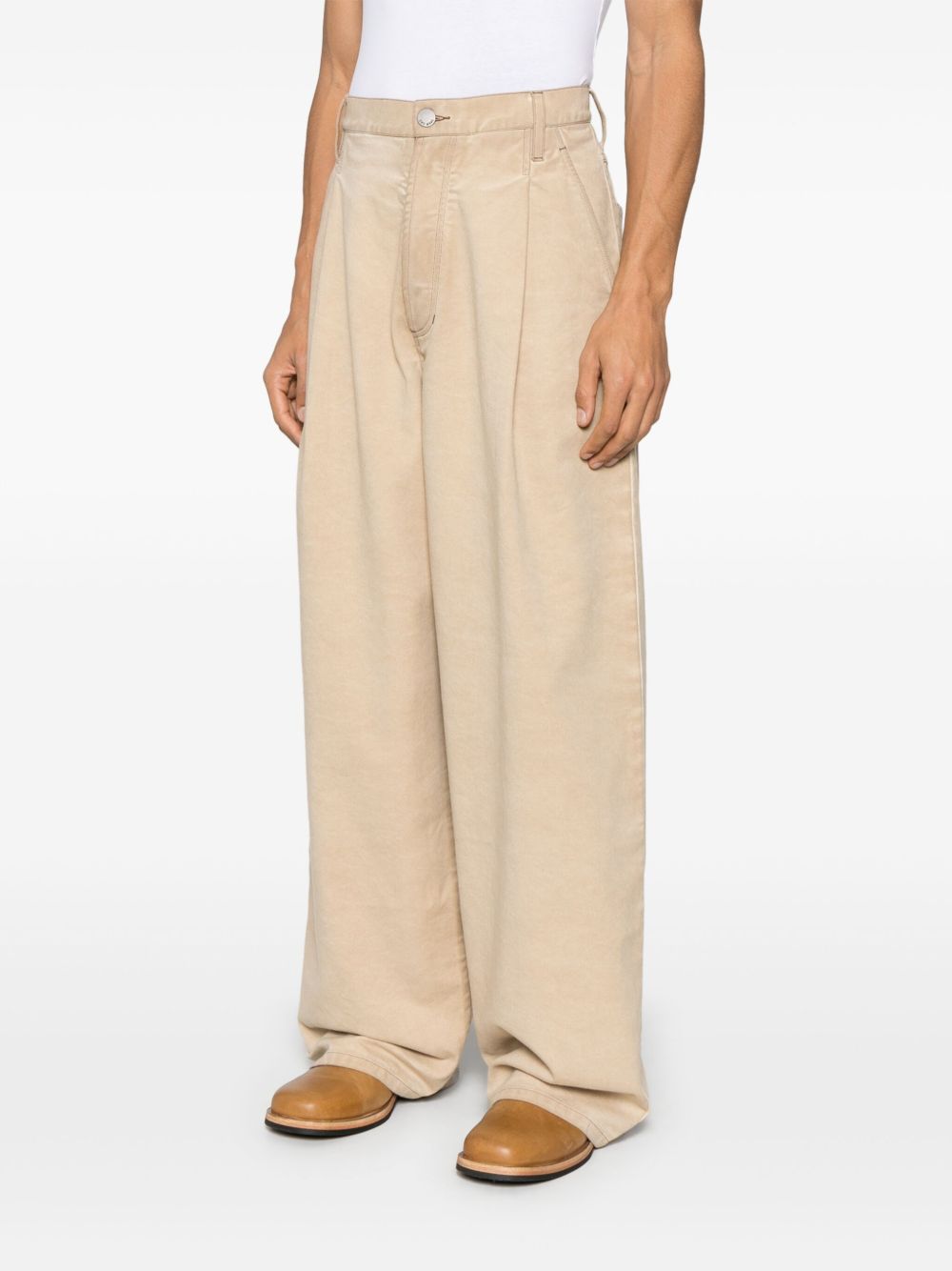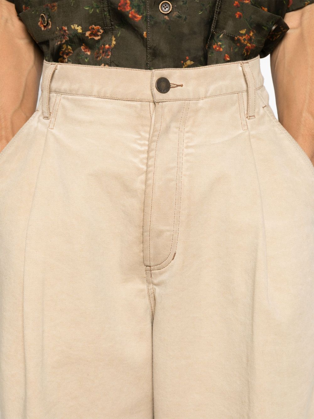 pantalone, passanti per cintura, chiusura con bottoni, pences, gamba larga, tasche laterali, tasche posteriori applicate, etichetta con logo in cuoioComposizione: 89% cotone 11% poliestereIstruzioni per il lavaggio: lavare a mano