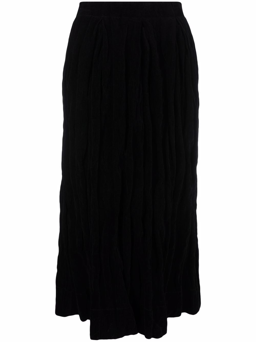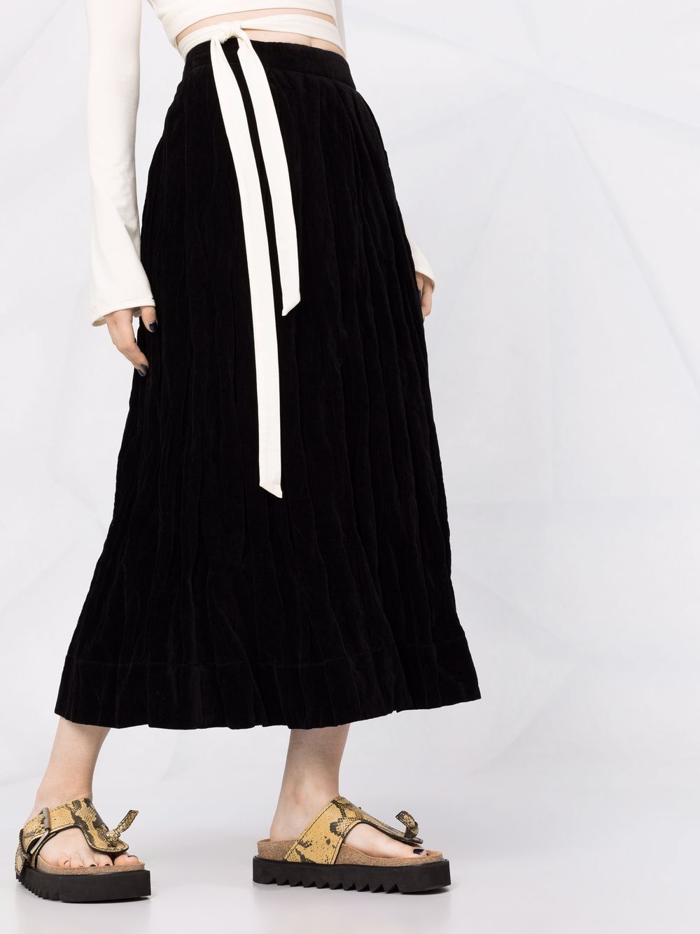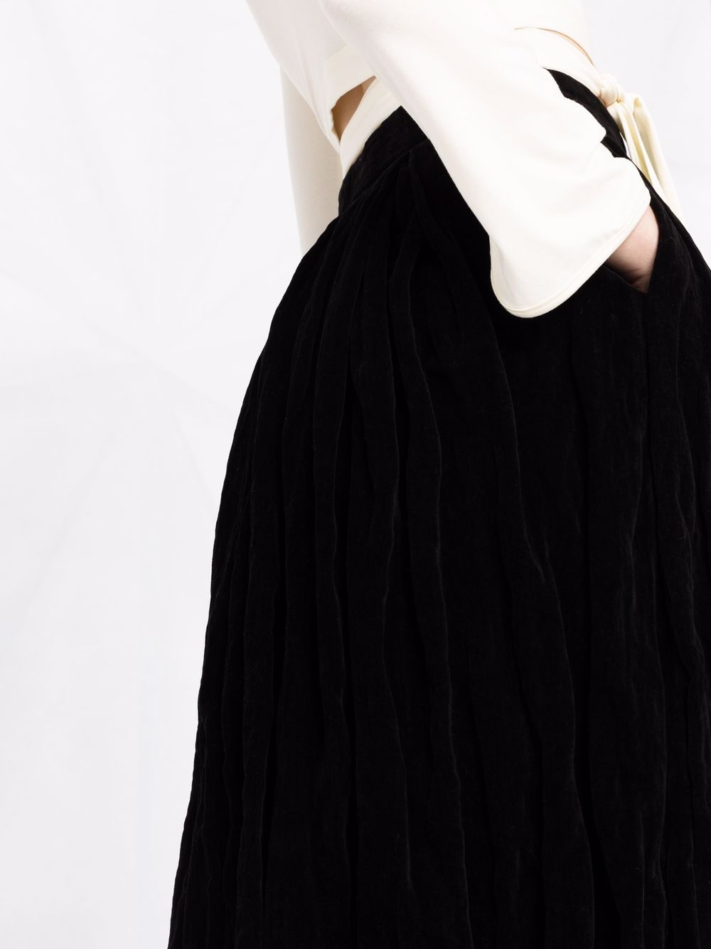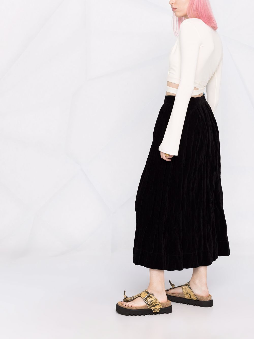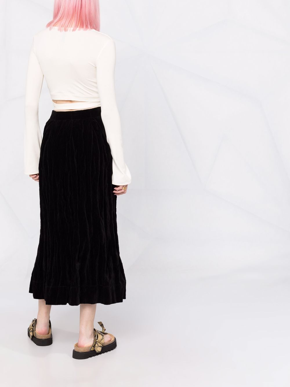 gonna midi, pences in vita, tasche laterali, fondo svasato, chisura laterale con gancio e bottoni, fodera bianca, orlo sfilacciato