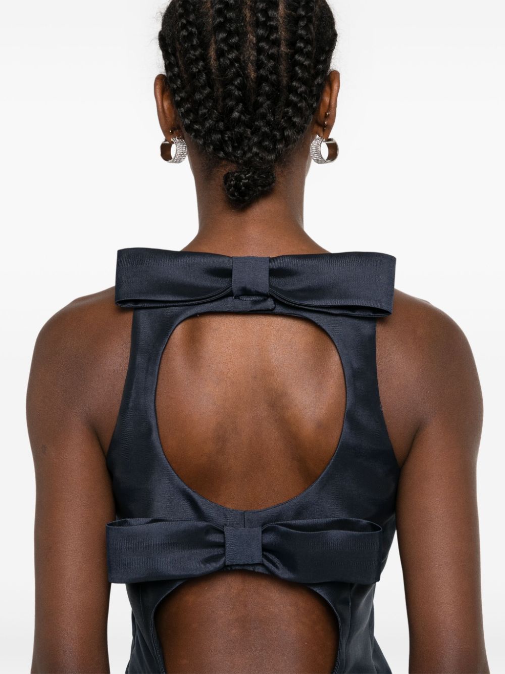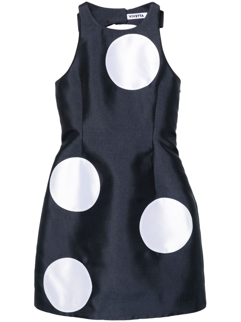 abito corto, tessuto mikado, maxi pois applicati a contrasto, girocollo, senza maniche, schiena scoperta con decoro di maxi fiocchi Composizione: 100% poliestere Istruzioni per il lavaggio: lavare a secco