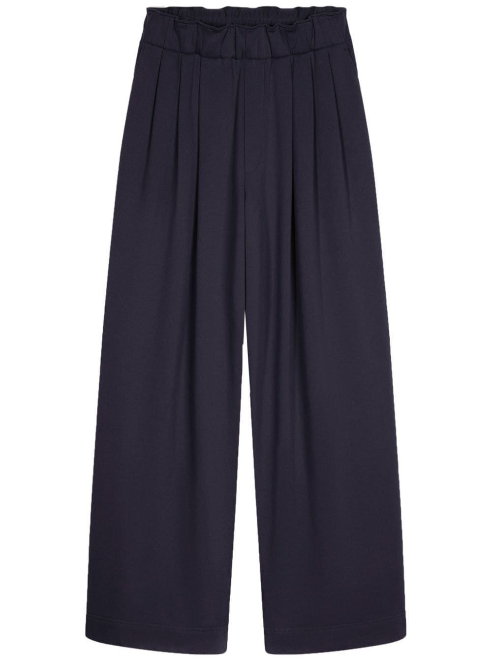 trousers, fleece, elastic waist with drawstring, side pockets, pleats, back pocket, wide leg Composition: 100% cotton Washing instructions: wash at 30°