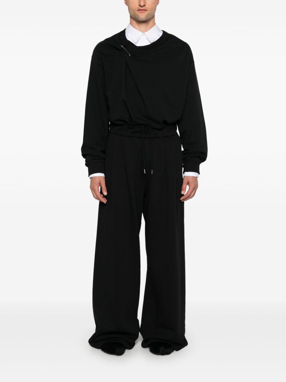 trousers, fleece, elastic waist with drawstring, side pockets, pleats, back pocket, wide leg Composition: 100% cotton Washing instructions: wash at 30°