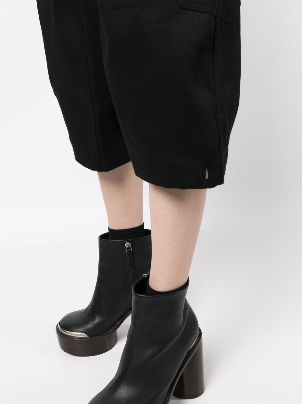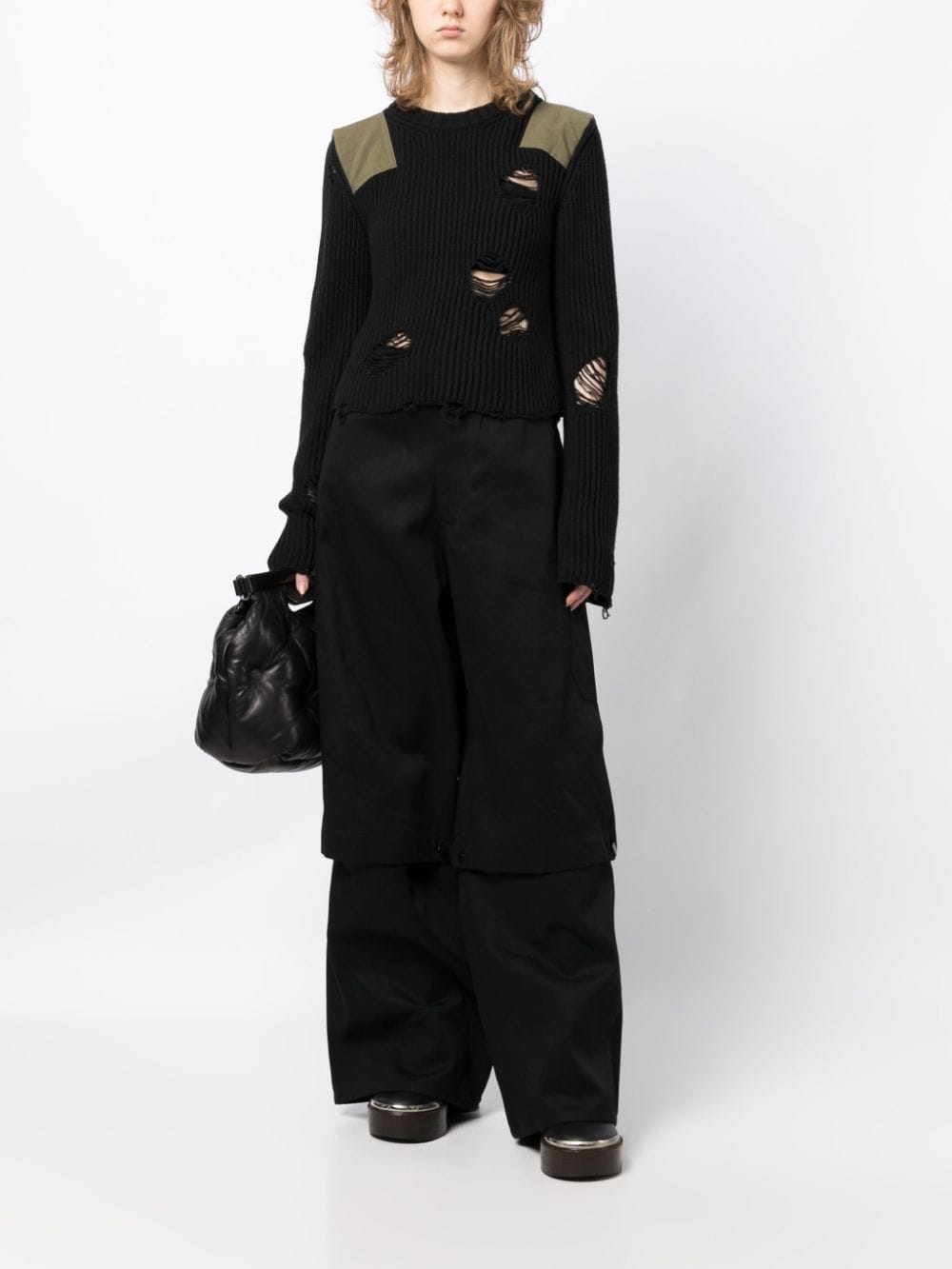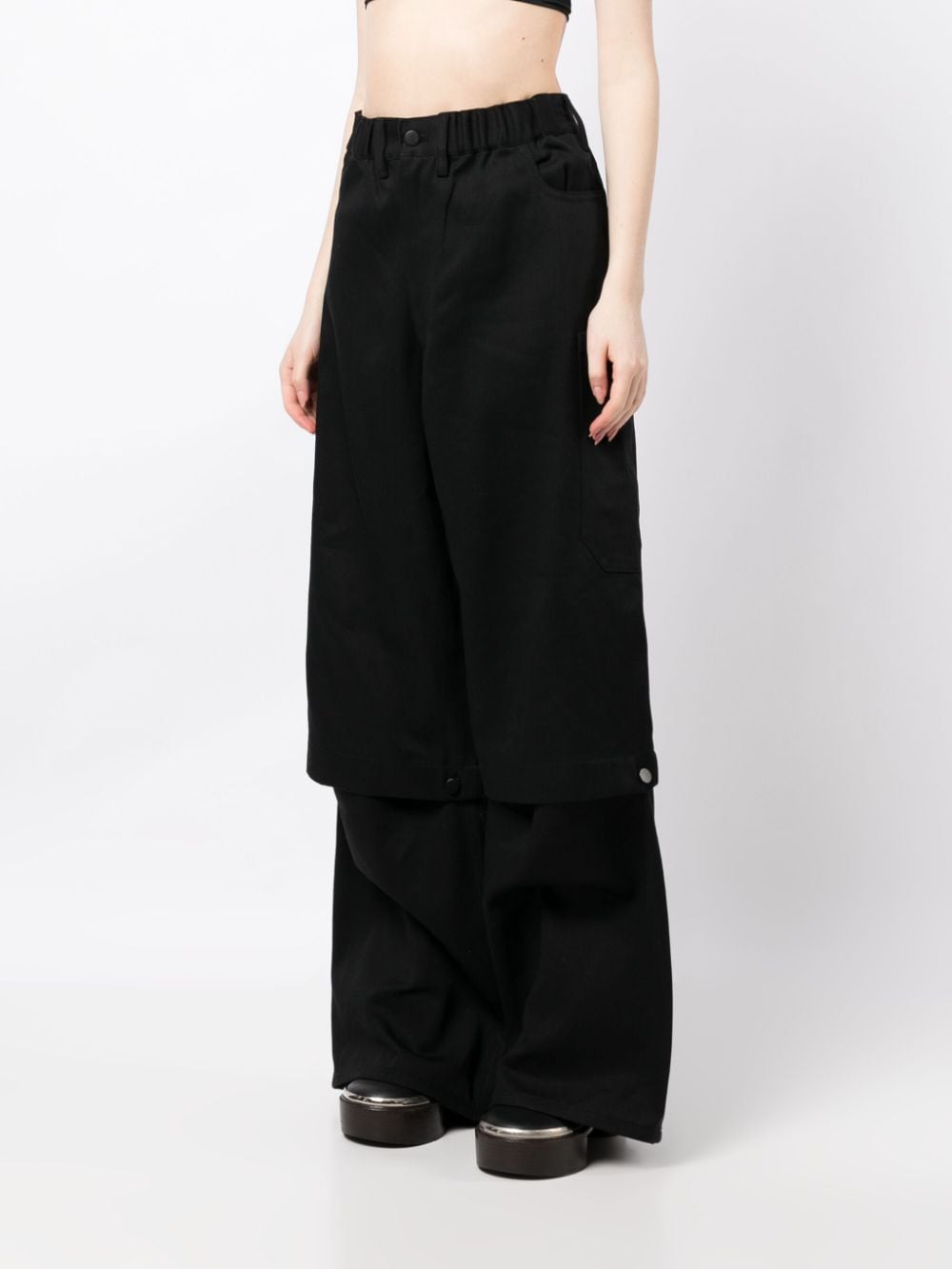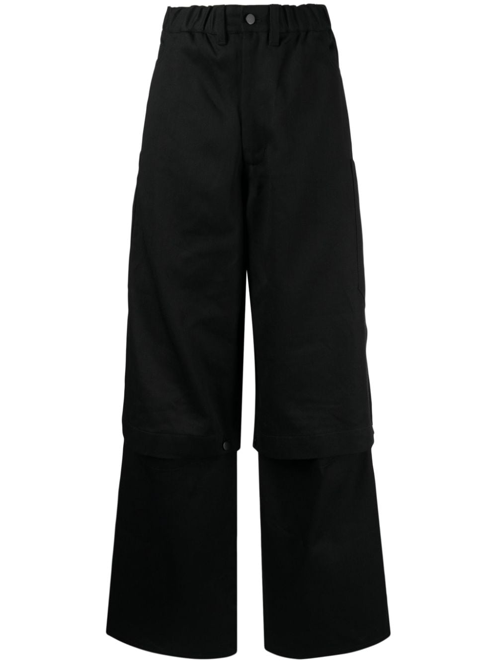 denim trousers, elastic waist, belt loops, button and zip closure, multi pockets, wide leg, detachable leg part with press studs, unisex Composition: 100% cotton Washing instructions: wash at 40°