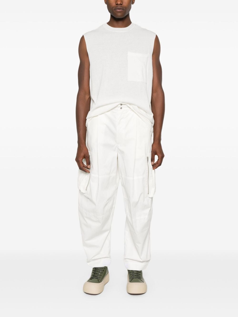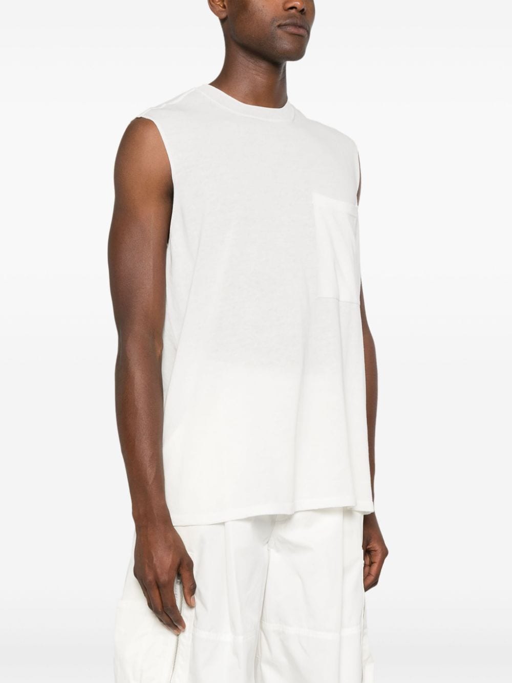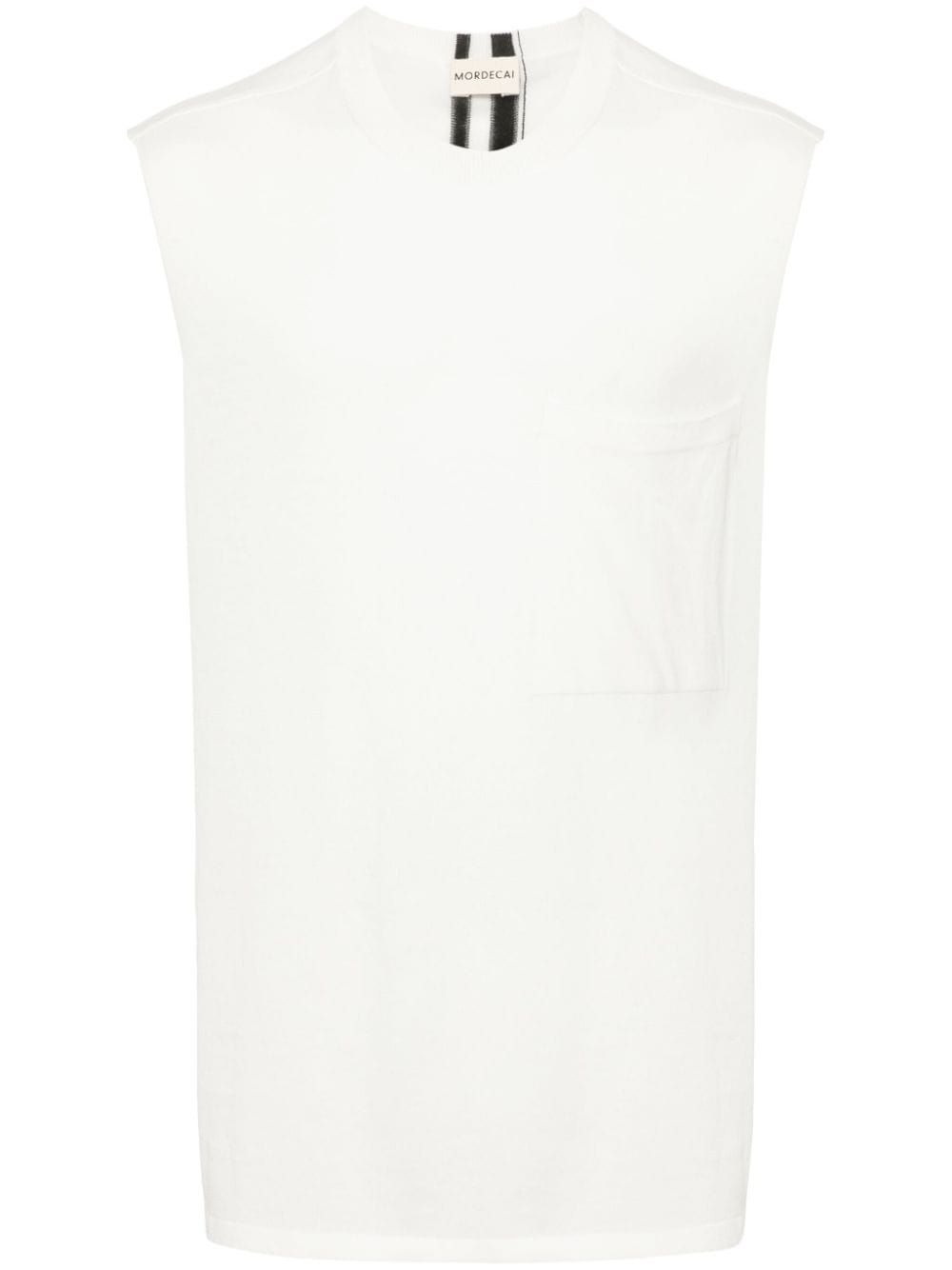 lightweight sweater, crew neck, sleeveless, chest pocket, contrasting stripe on the back