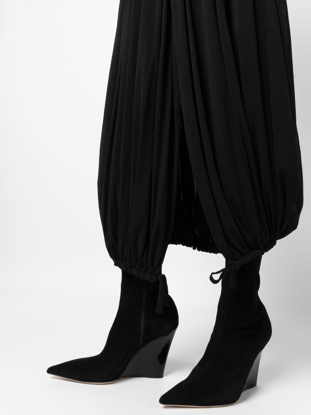 skirt, draped waistband, pences, slit, drawstring hem, lined