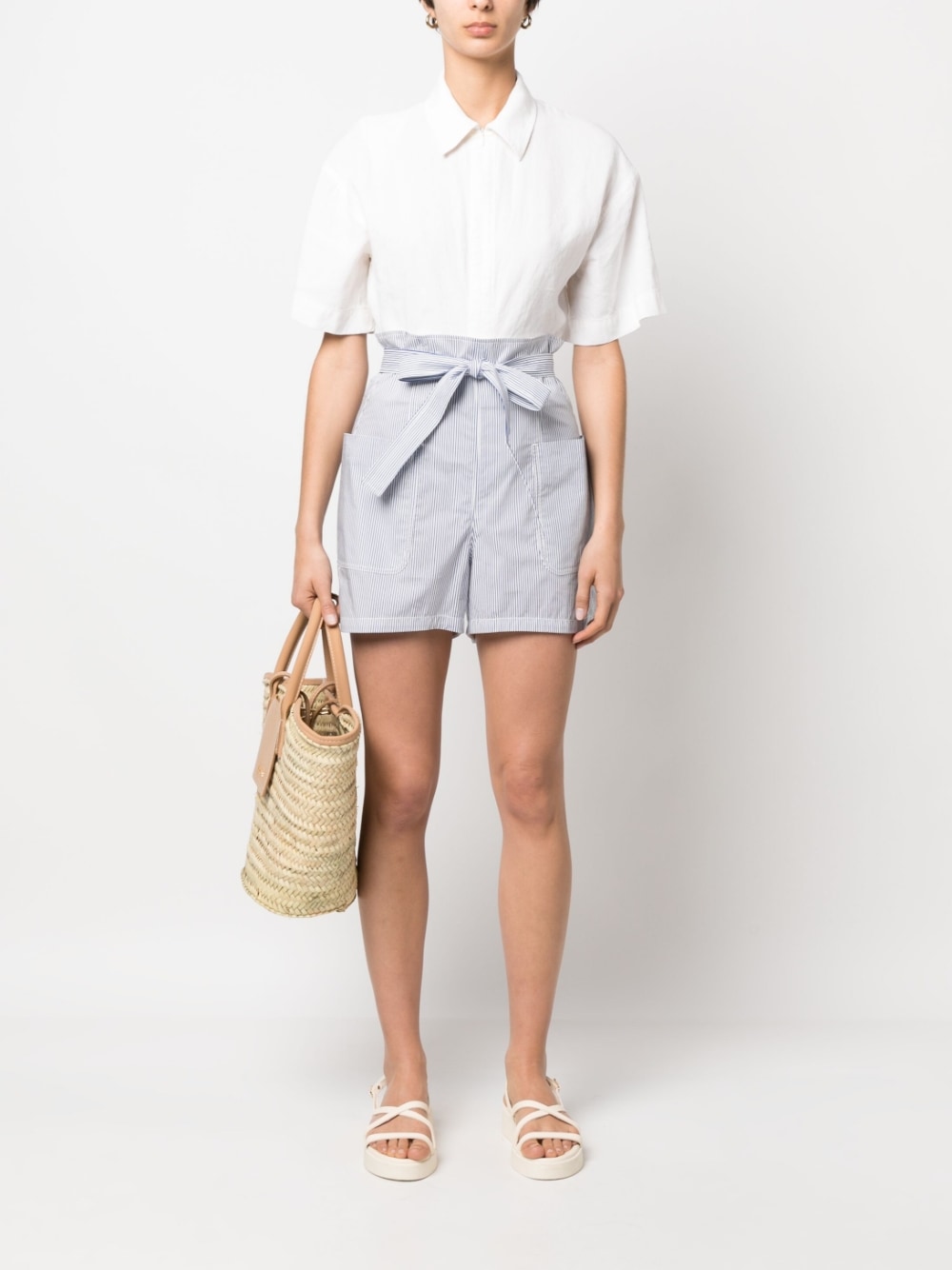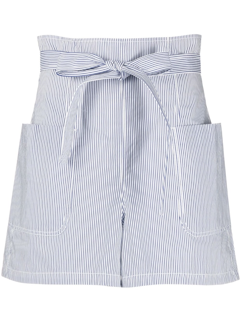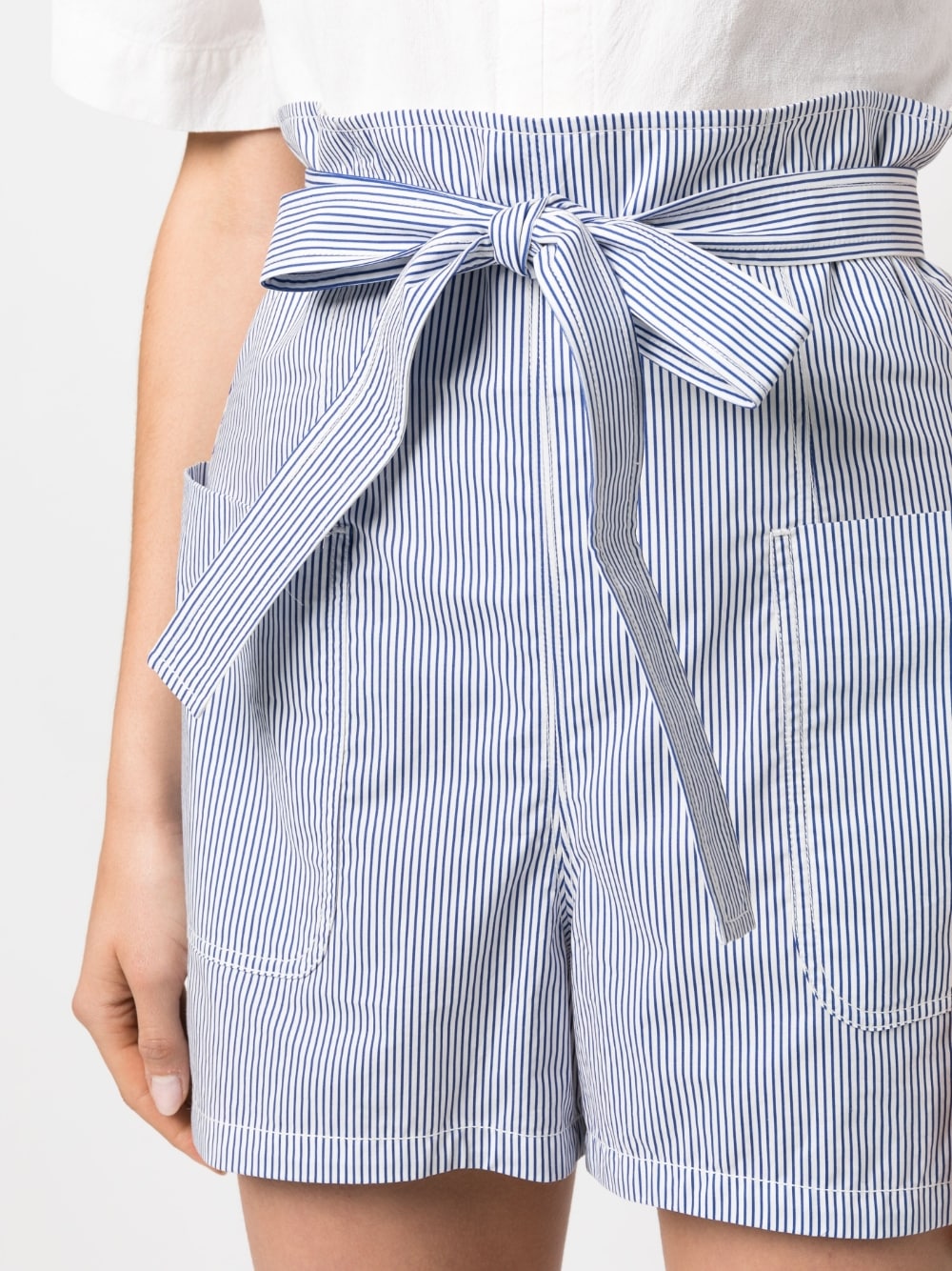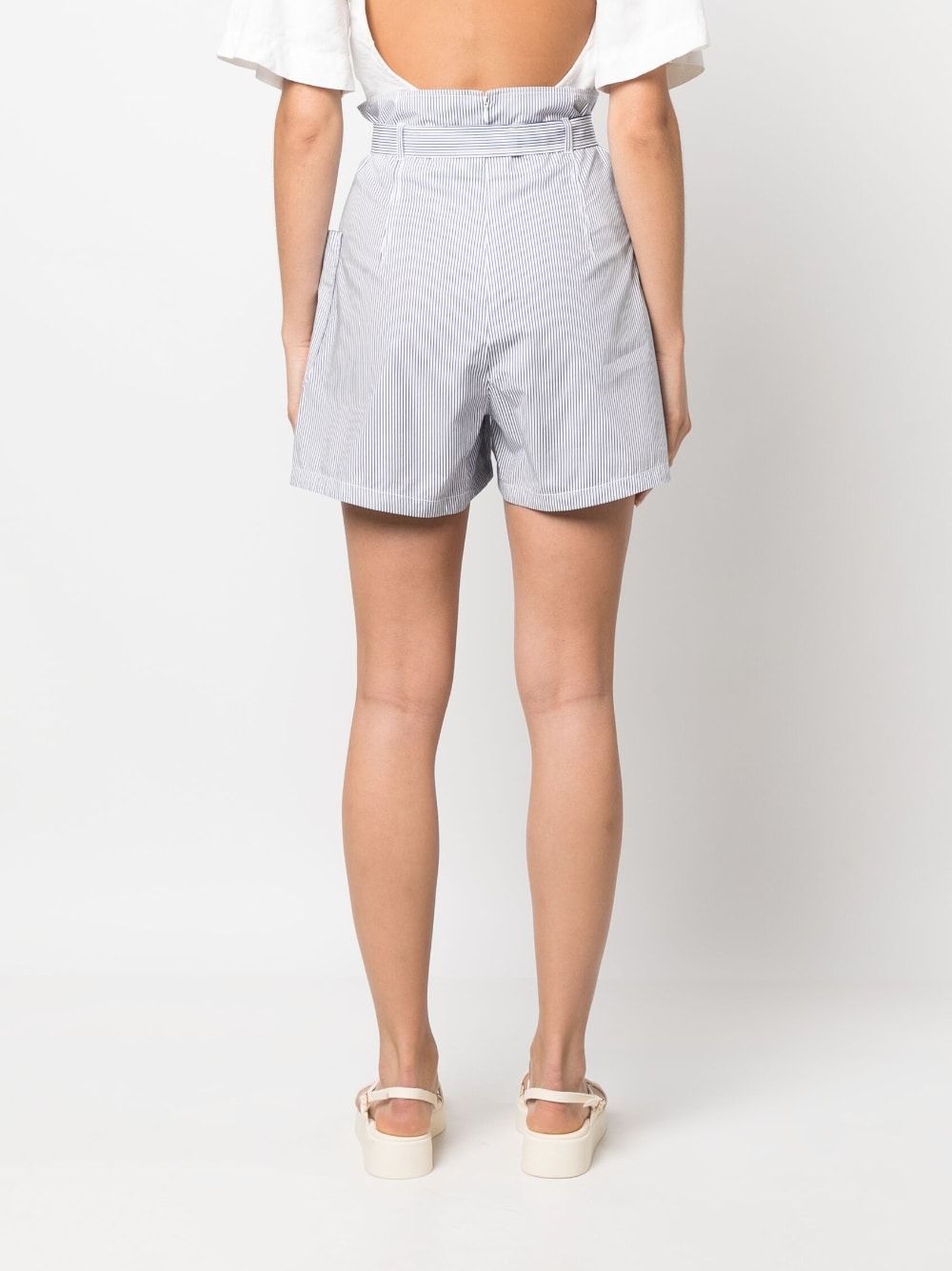 shorts, striped fabric, high waist, belt with loops, back zip, pockets