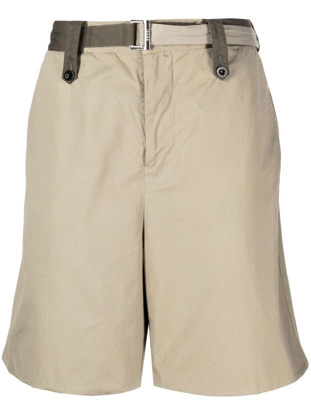 bermuda shorts, fabric, wide leg, belt with metal buckle, pockets, belt loops, button and zip, lined Composition: 100% cotton Washing instructions: wash at 30° or dry clean