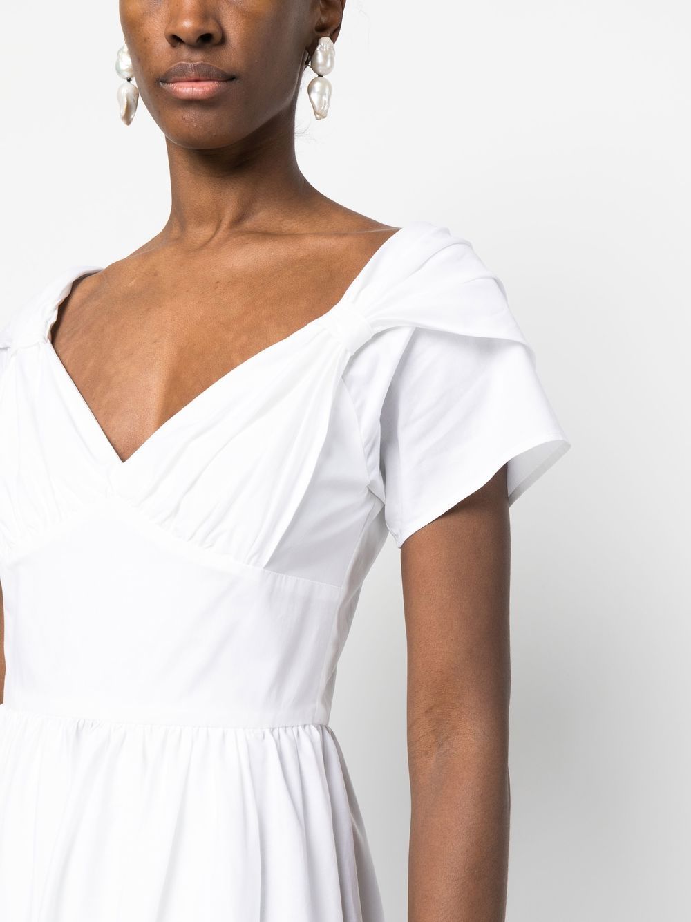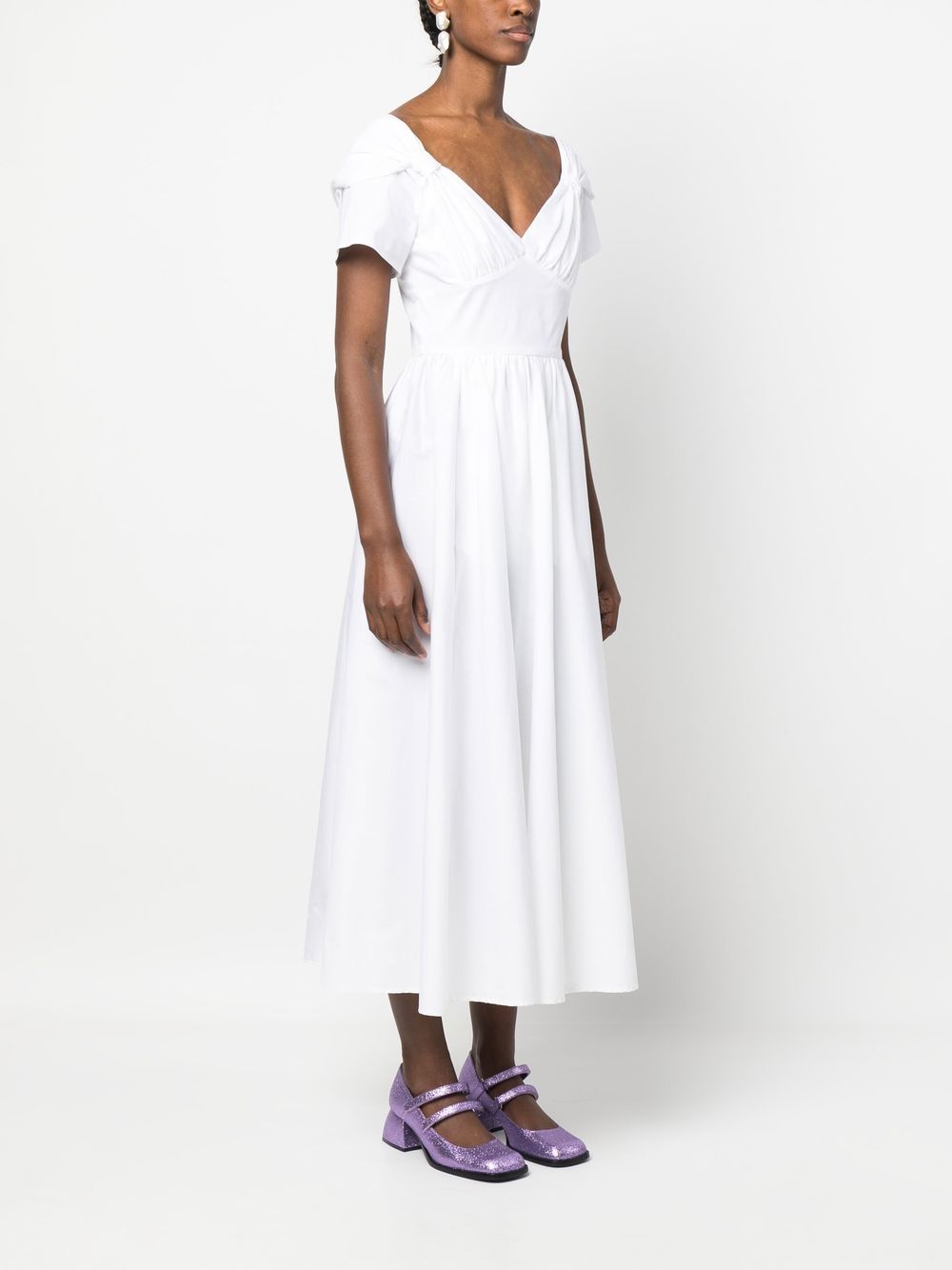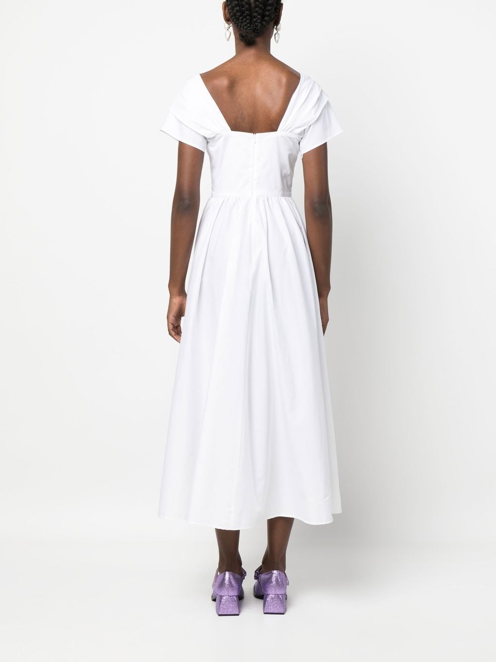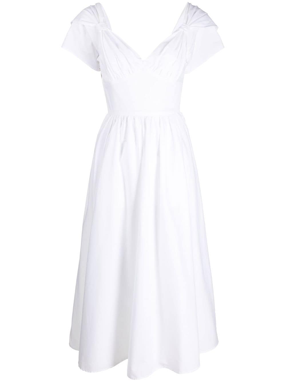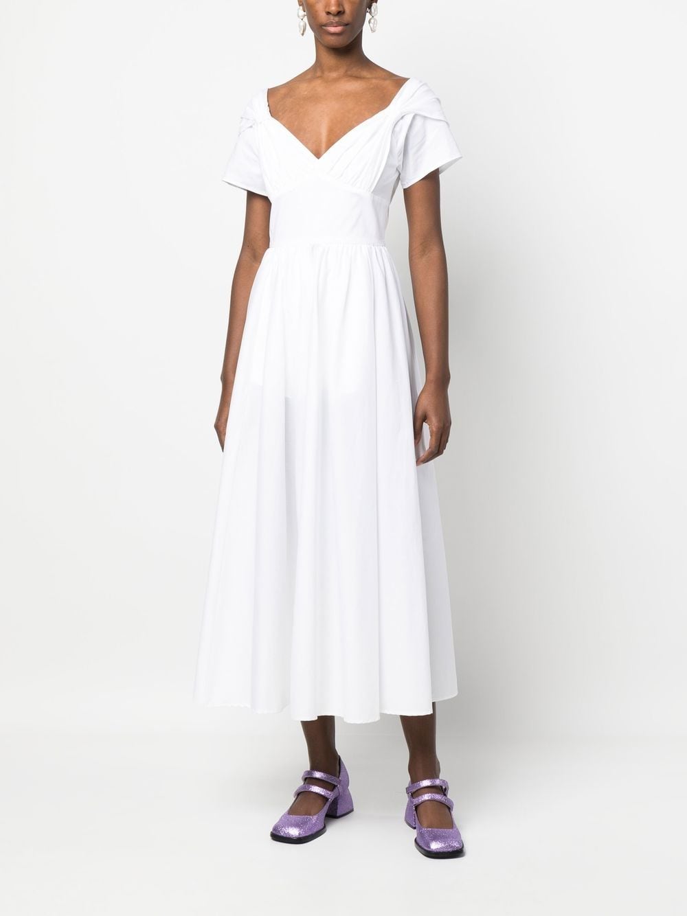 midi dress, poplin, sweetheart neckline, side knots, short sleeve with double layer, wide skirt, back zip Composition: 97% cotton 3% elastane Washing instructions: machine wash or dry clean