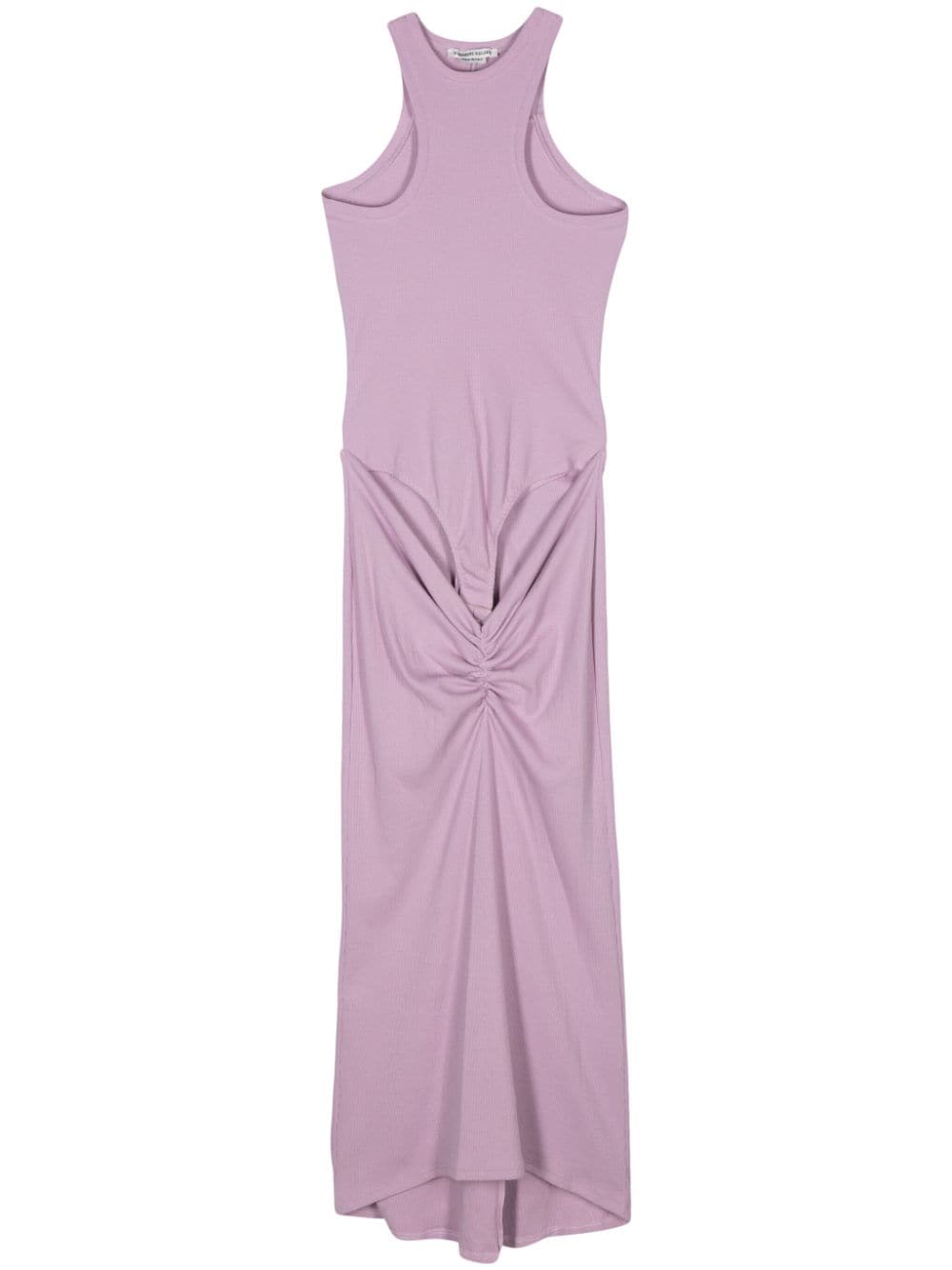 abito lungo, jersey a costine, senza maniche, vestibilità aderente, chiusura interna con body, dettagli in vita cut-out, drappeggio Composizione: 97% cotone 3% elastane Istruzioni per il lavaggio: lavare in lavatrice