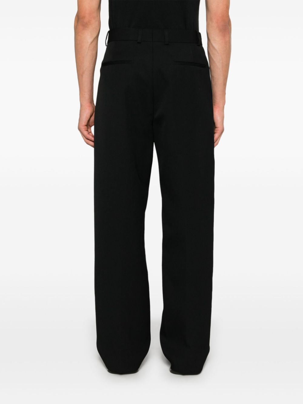 pantalone sartoriale, passanti per cintura, chiusura con gancio e zip, pences, tasche laterali, tasche a filo posteriori, gamba larga Composizione : 100% lana vergine Istruzioni per il lavaggio: lavare a secco