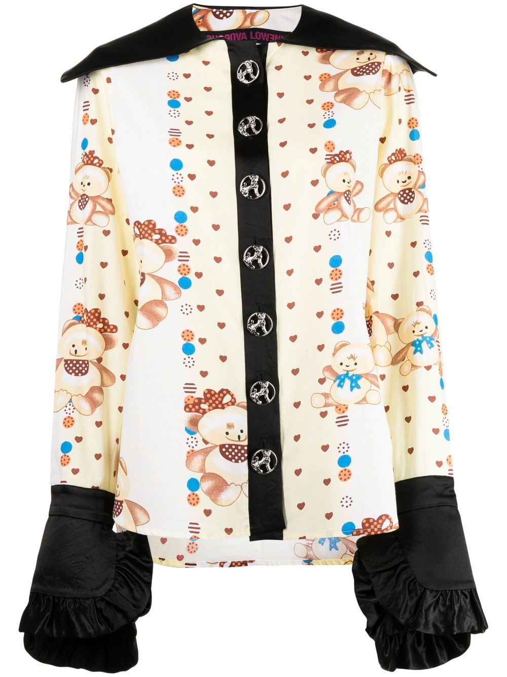 camicia, collo ampio e polsi con rouches in contrasto, bottoni in metallo con gatti, stampa con teddy bear Composizione: 100% cotone Istruzioni di lavaggio: lavare a secco