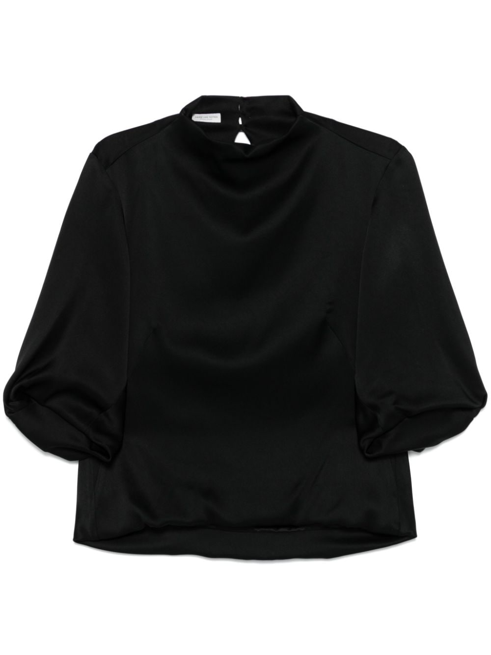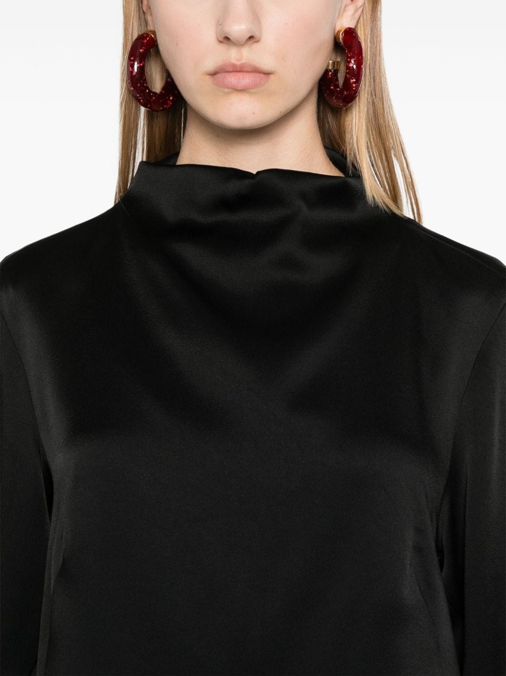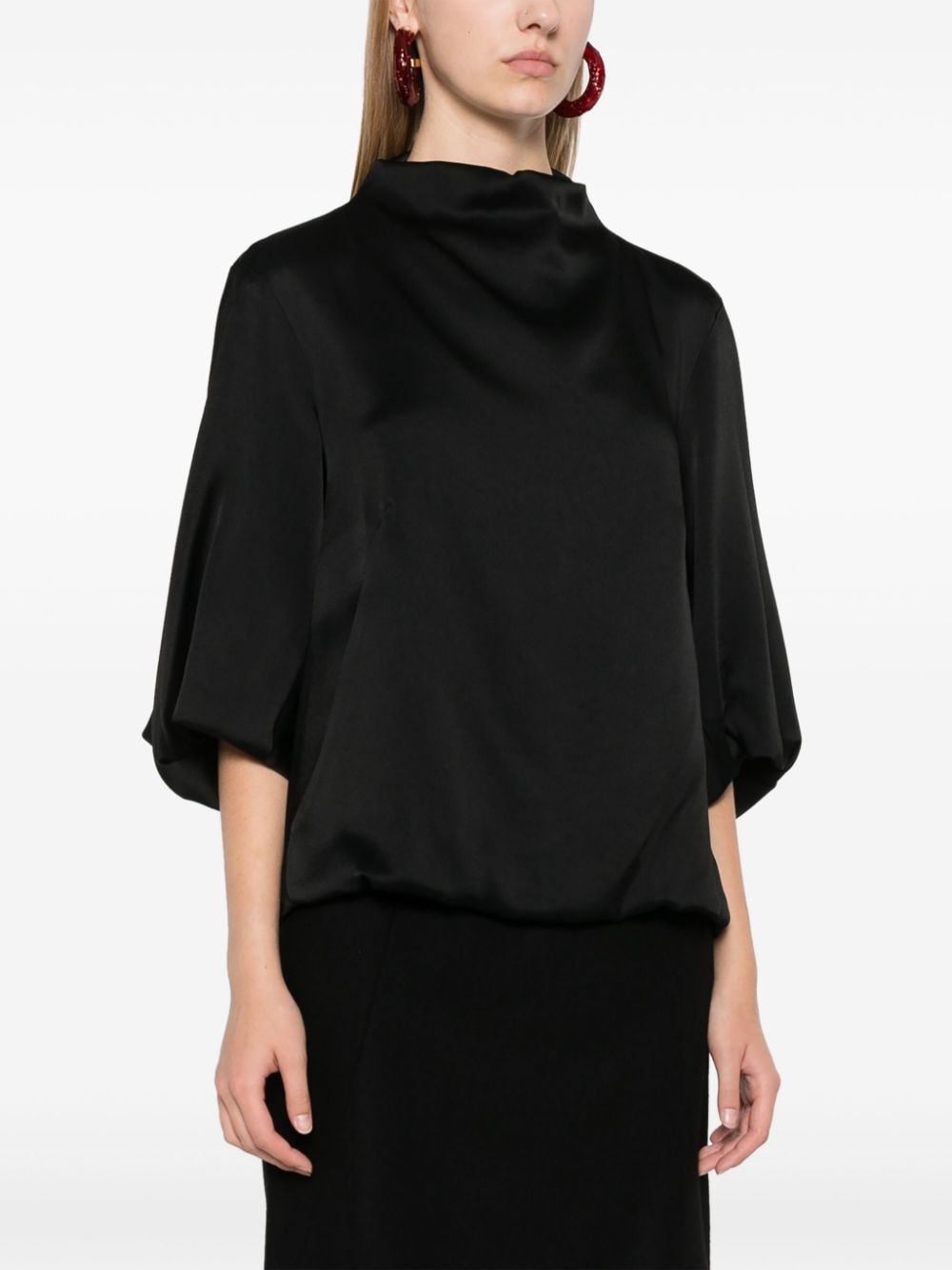 blusa, collo a cratere, chiusura con bottoncini dietro al collo, satin, manica ampia a tre quarti con bordo drappeggiato, fondo con lato posteriore più lungo, foderata, vestibilità comoda Composizione: 73% acetato 27% viscosa Istruzioni per il lavaggio: lavare a secco