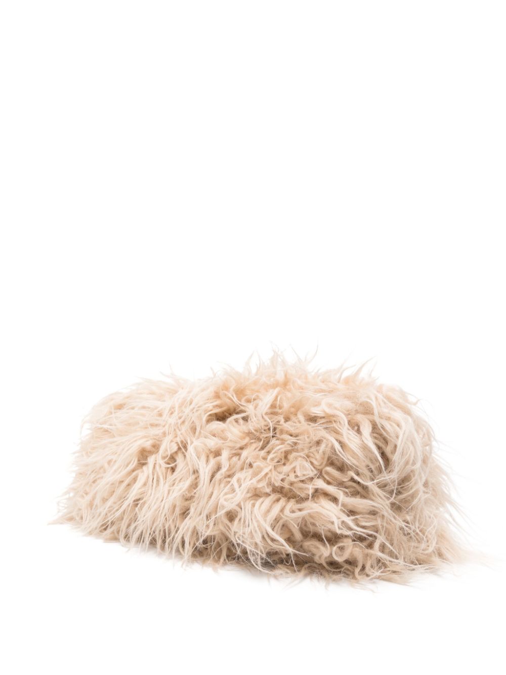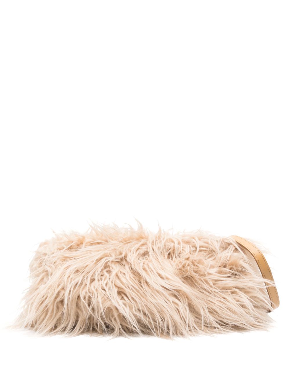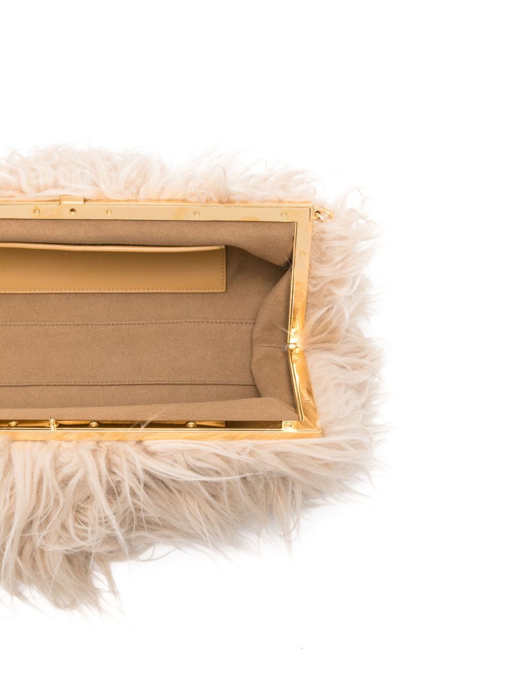 borsa clutch, pelliccia finta, tracolla in metallo staccabile, chiusura a scatto, tasca interna, foderata