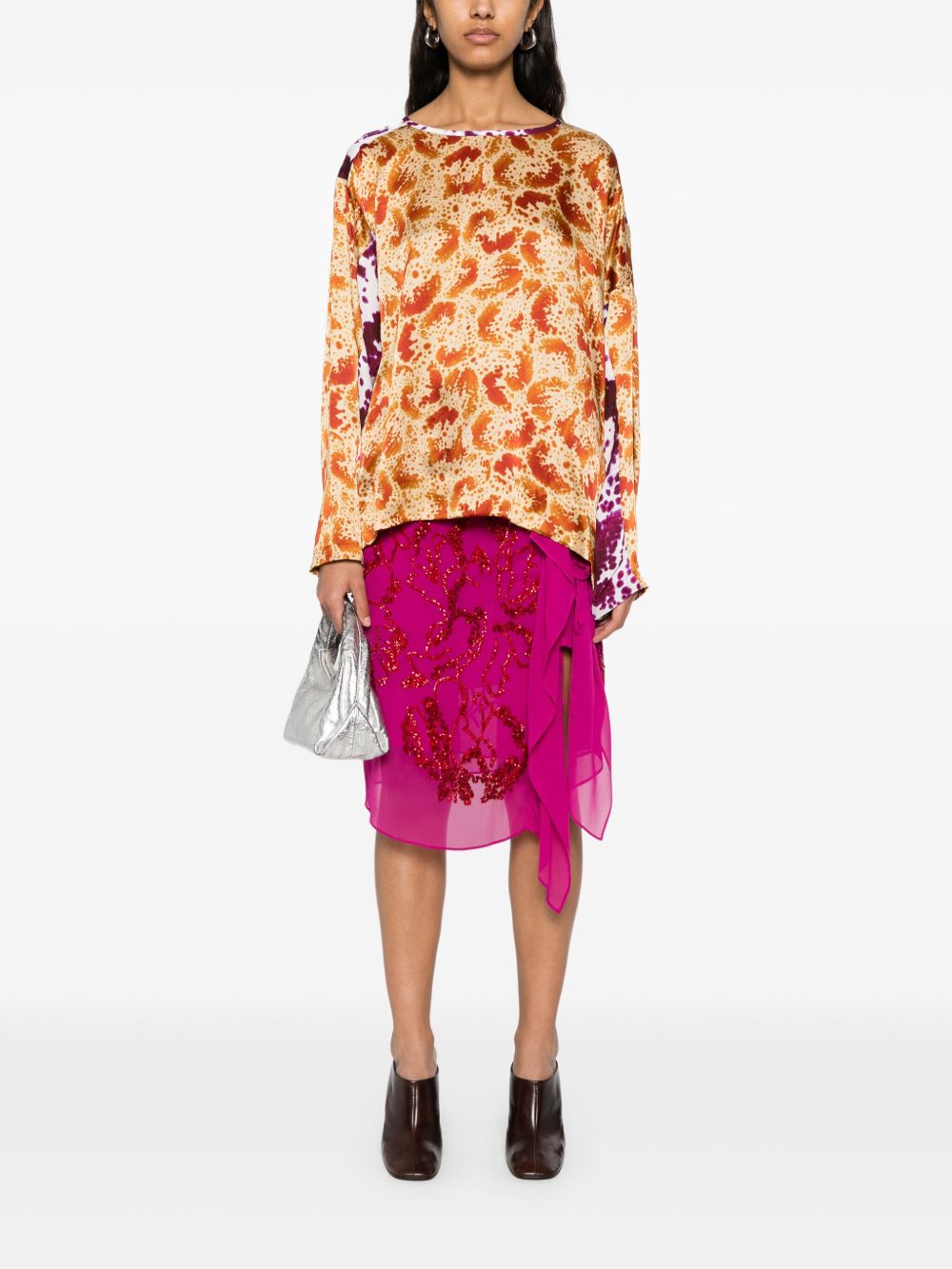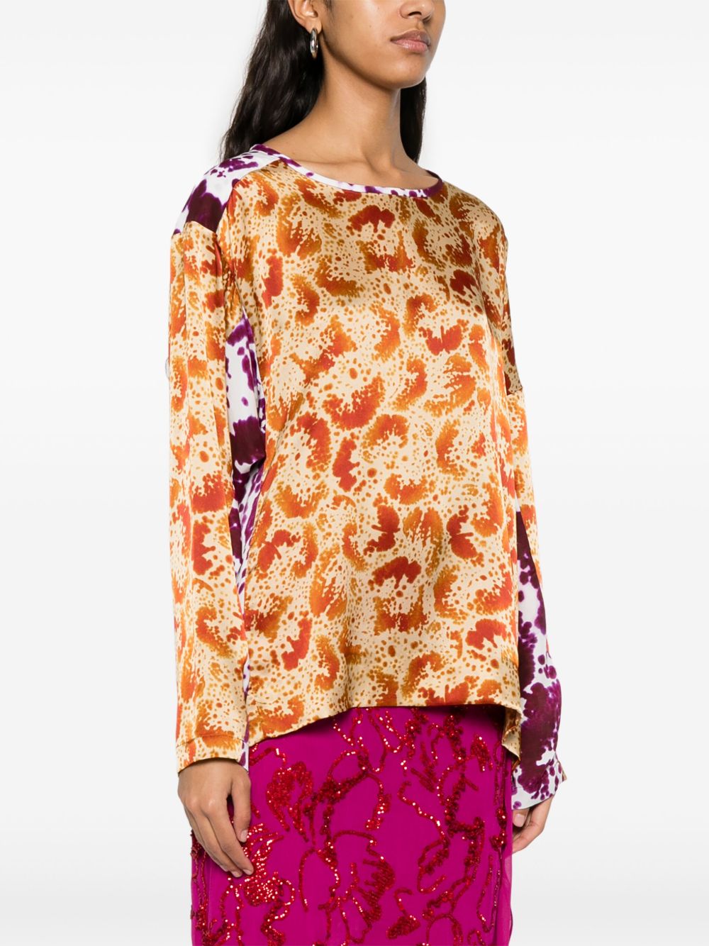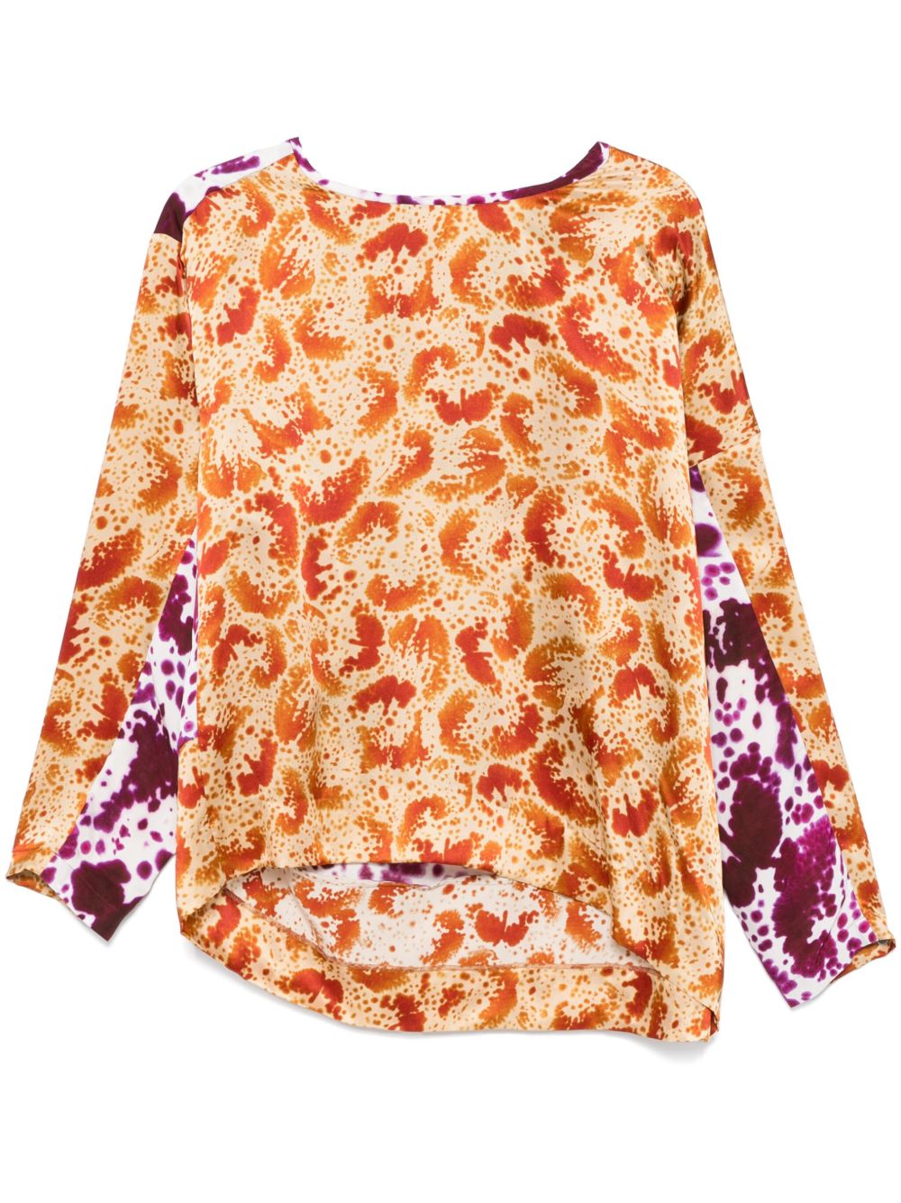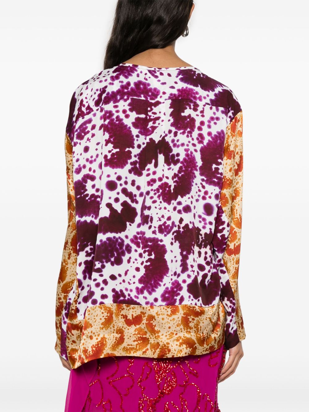 blusa, oversize, girocollo, manica lunga, fantasia a due colori
