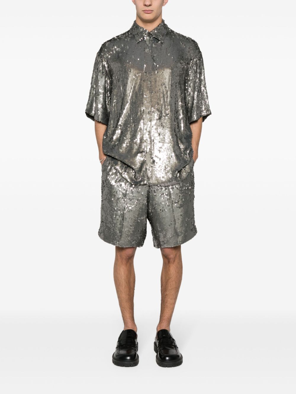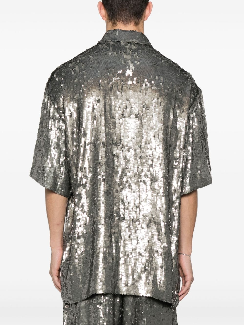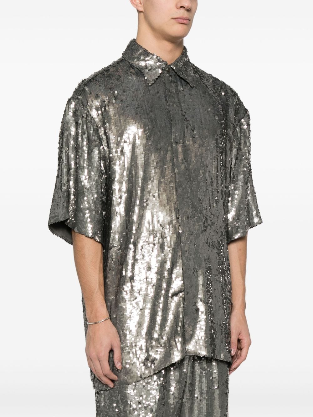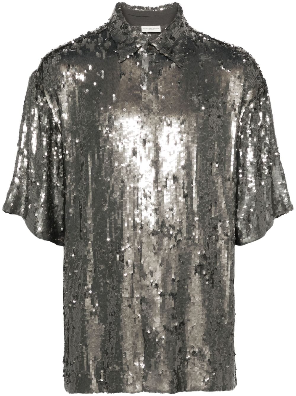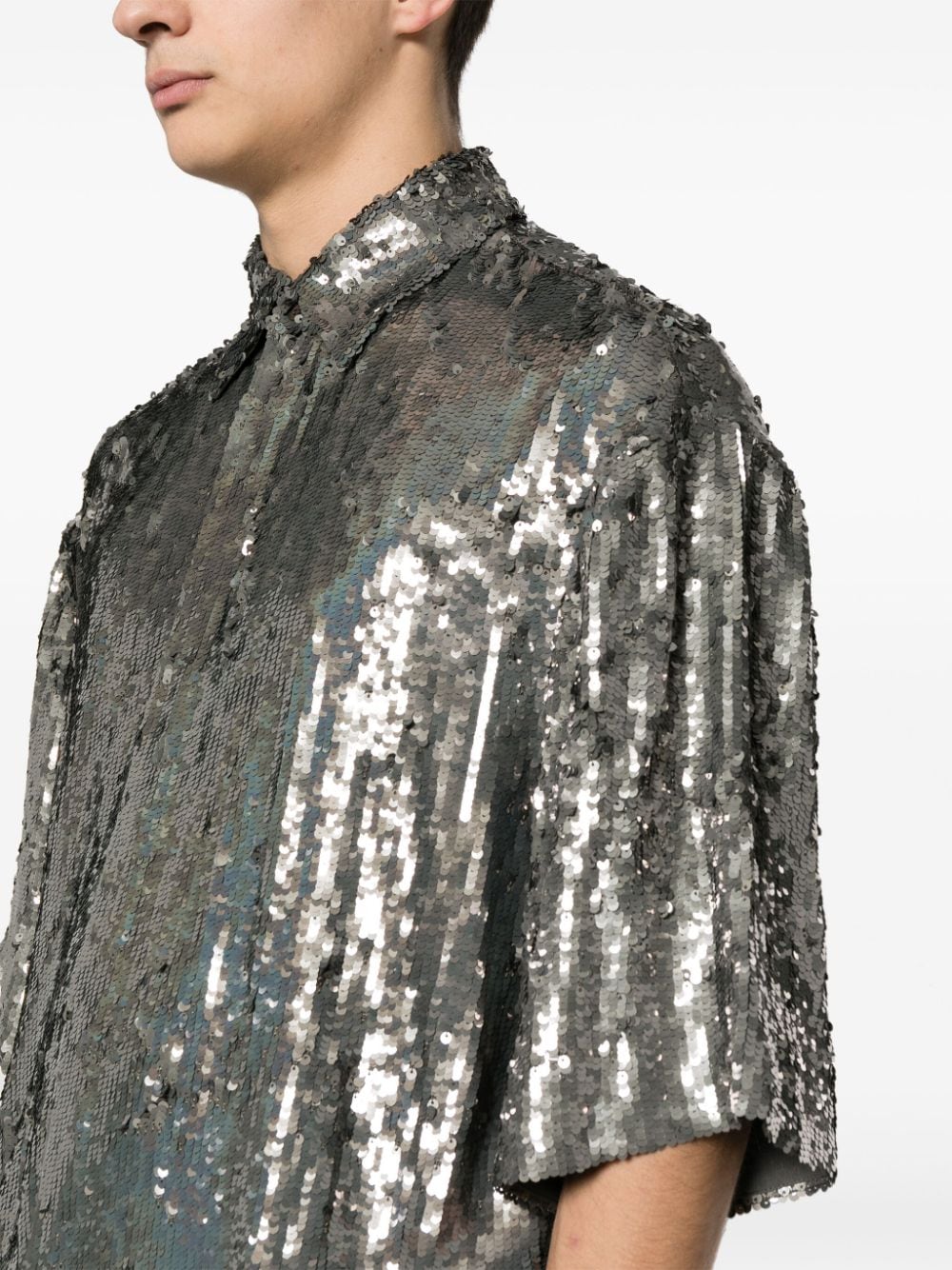 camicia, vestibilità ampia, colletto, chiusura con bottoni, manica corta, paillettes