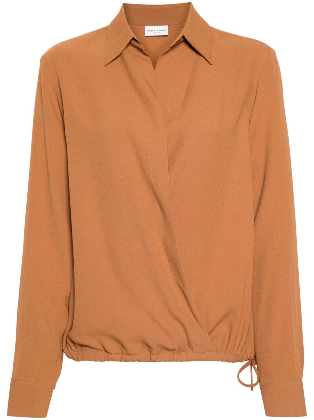camicia, colletto, design ad incrocio, senza bottoni, crepe envers satin, manica lunga con polsino e bottone, fondo con coulisse Composizione: 73% acetato 27% viscosa Istruzioni per il lavaggio: lavare a secco