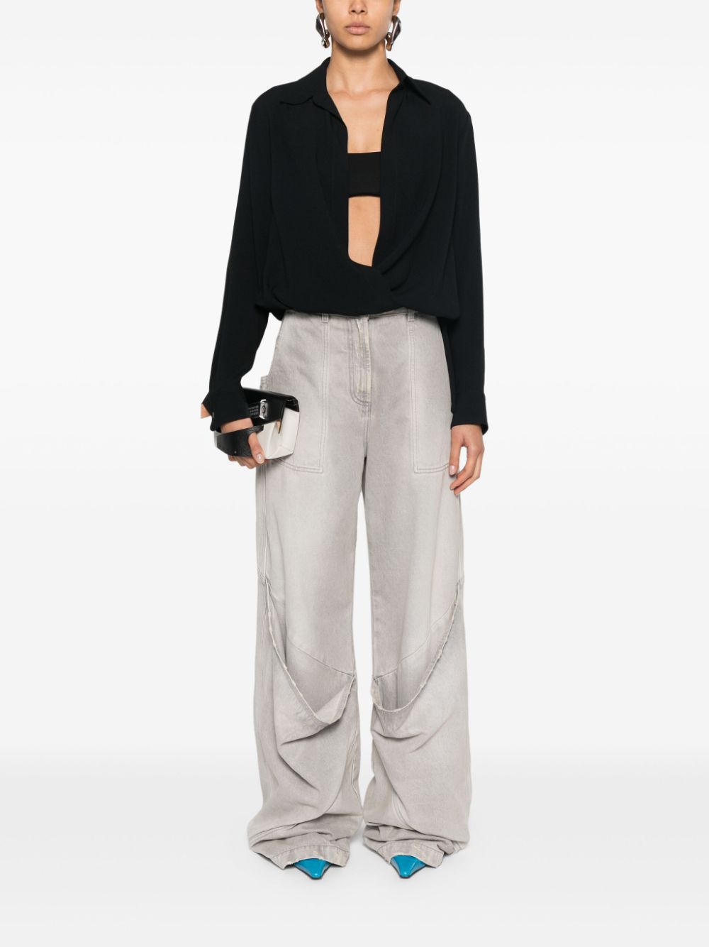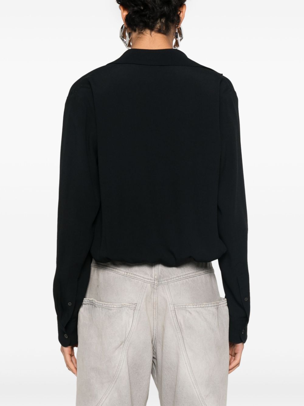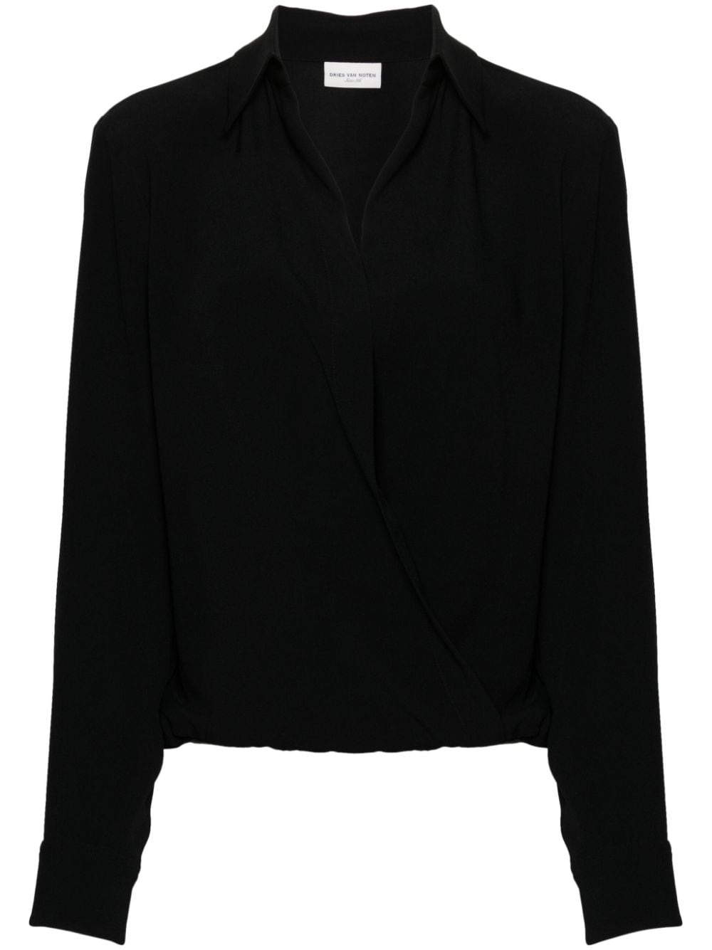 camicia, colletto, design ad incrocio, senza bottoni, crepe envers satin, manica lunga con polsino e bottone, fondo con coulisse Composizione: 73% acetato 27% viscosa Istruzioni per il lavaggio: lavare a secco