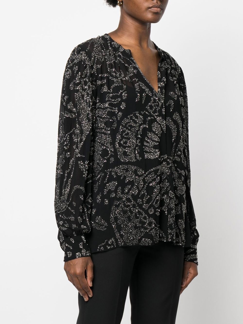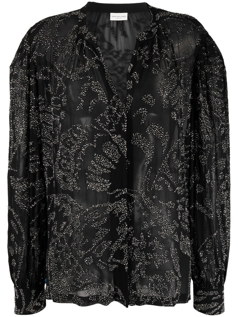 camicia, tessuto ricamato con jais, senza collo, scollo a V, bottoni a pressione, manica lunga ampia, polsini, spacchi laterali Composizione: 100% viscosa Istruzioni di lavaggio: lavare a secco