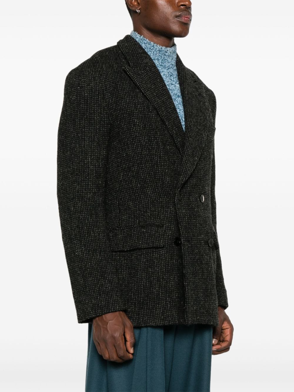 giacca , doppio petto, revers a lancia, chiusura con bottoni, taschino, tasche con pattine, semi foderata, decostruita, manica lunga, tasca interna Composizione: 100% lana Istruzioni per il lavaggio: lavare a secco